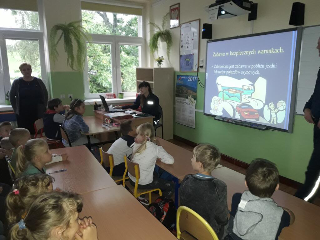 22 września 2017r. uczniowie klas I - VI oraz V -VII uczestniczyli w spotkaniu z policjantami Komisariatu Policji w Suchedniowie. Tematem pogadanki była „Bezpieczna droga do szkoły”. Funkcjonariusze
