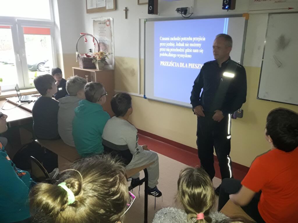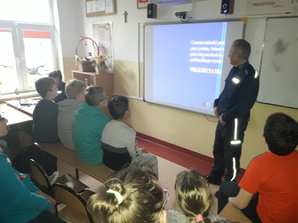 Uczniowie aktywnie uczestniczyli w spotkaniu, zadawali wiele pytań dotyczących bezpieczeństwa. Wykazywali się też dobra znajomością znaków drogowych i zasad przechodzenia przez ulicę. Na koniec spotkania