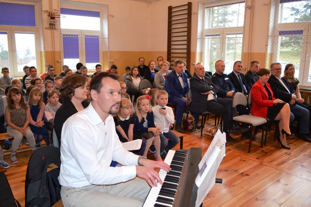 Przewodniczącego gminnej komisji ds. rozwiązywania problemów alkoholowych - Edmunda Wykroty oraz dyrektora Gminnej Bibliteki Publicznej – Magdaleny Kowalik. Słodkie niespodzianki ofiarowali wszystkim uczniom