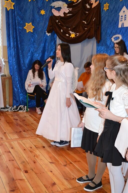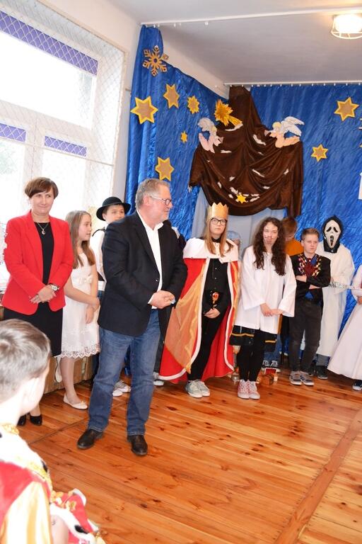 pokłonu trzech Mędrców ze Wschodu. Niezwykły bożonarodzeniowy nastrój podkreśliły świąteczne śpiewy kolęd i pastorałek przygotowany przez nauczyciela muzyki - Grzegorza Jasińskiego. Na zakończenie nie zabrakło życzeń