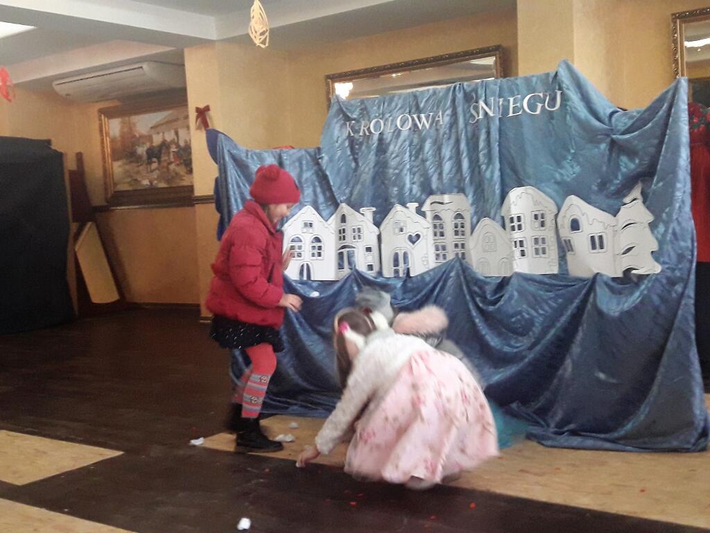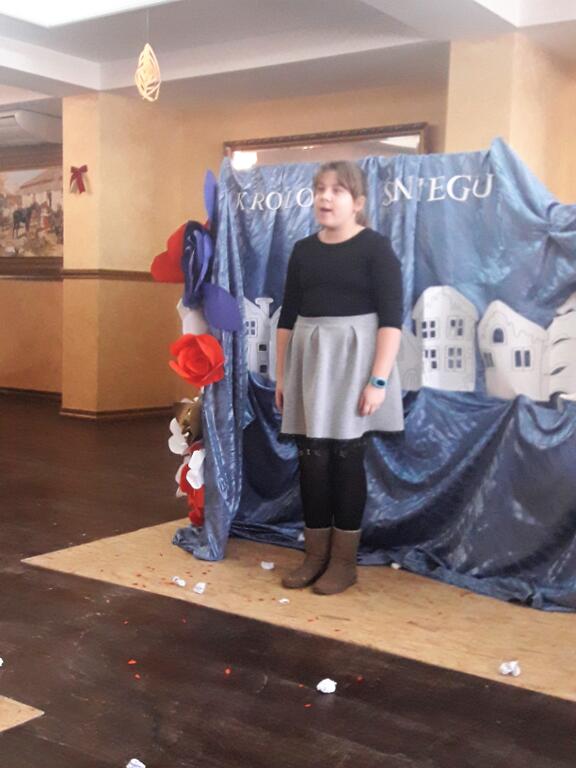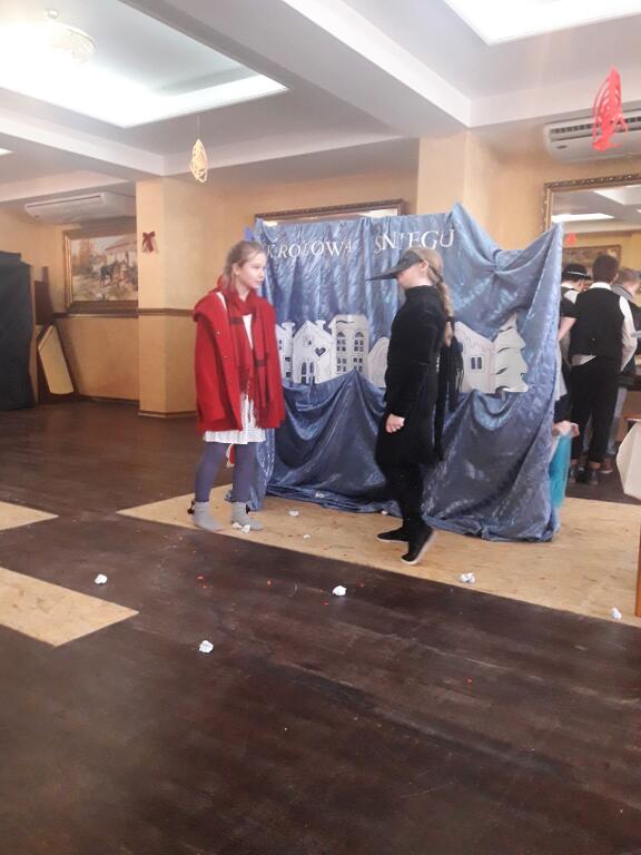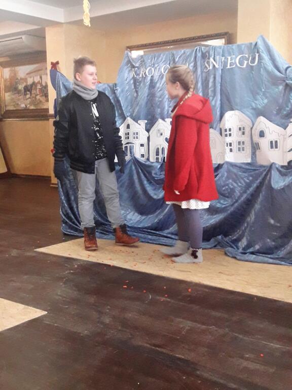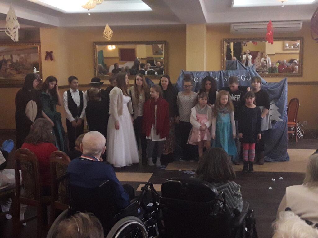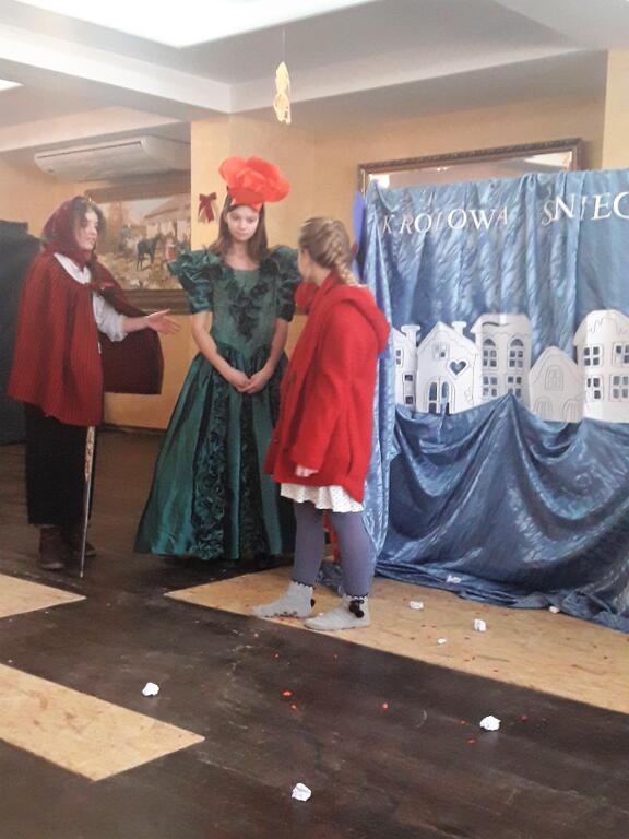 2 lutego 2018 roku uczniowie należący do Szkolnego Teatru Zaczarowana Szafa pojechali z wizytą do Domu Opieki „Liliowy Dworek” w Łącznej, gdzie zaprezentowali osobom tam przebywającym przedstawienie pt. „Królowa Śniegu” na podstawie baśni Hansa Christiana Andersena. Scenariusz inscenizacji opowiada o walce i wędrówce małej Gerdy w poszukiwaniu drogiego jej sercu przyjaciela Kaja, którego zaczarowała zła Królowa. Na swojej drodze dziewczynka spotkała wiele przeszkód, ale i grono dobrych postaci – ludzi i zwierząt, którzy pomogli jej kontynuować poszukiwania. Nauką wypływającą z tej pięknej baśni jest dążenie do celu, mimo trudności, trwanie w bezgranicznej miłości czy przyjaźni. Przedstawienie przeplatane było pięknymi interpretacjami piosenek w wykonaniu uczniów, scenami tanecznymi (taniec zbójnicki, taniec diabłów), ogromnie podobało się seniorom. Wizyta w Domu Opieki była bardzo miłym i niecodziennym wydarzeniem, zarówno dla uczniów, jak i seniorów. Takie spotkania uczą dzieci i młodzież przede wszystkim szacunku do osób starszych, sprawiają przyjemność obu pokoleniom: starszym z przeniesienia się w baśniowy świat, młodszym z występu dla niecodziennej publiczności, umilenia starszym czasu, przybliżają ideę wolontariatu, uwrażliwiają na potrzeby innych ludzi. Uczniowie bardzo poważnie potraktowali tę wizytę, dali z siebie wszystko aby paniom i panom podobał się ich występ. Za to, oprócz gromkich braw i zaproszenia do częstszych wizyt, otrzymali kosz słodyczy oraz pomocy plastycznych. Dziękujemy bardzo naszym uczniom za serce, piękny występ, chwile wzruszeń jakie wszystkim podarowali. Wyrażamy wdzięczność rodzicom za pomoc w przygotowaniu strojów oraz właścicielom Domu Opieki „Liliowy Dworek”, za zaproszenie, miłe przyjęcie i ufundowane prezenty.