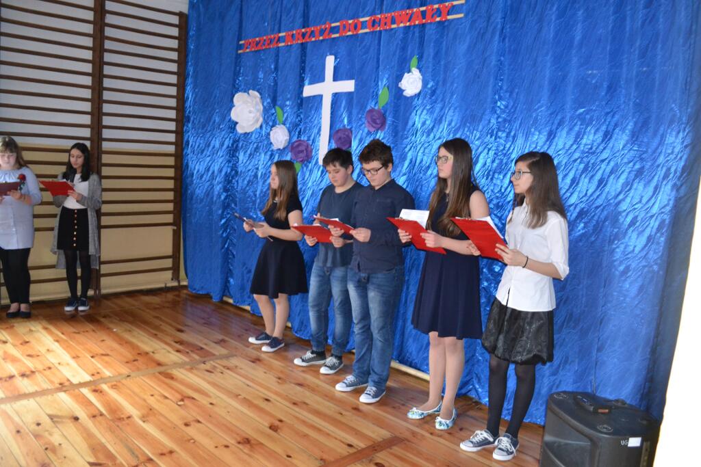 „Przez krzyż do chwały” – pod takim tytułem uczniowie klasy VI z naszej szkoły 28 marca 2018 r, podczas uroczystej akademii, wprowadzili nas w klimat świąt Paschalnych i Wielkanocnych. Poprzez