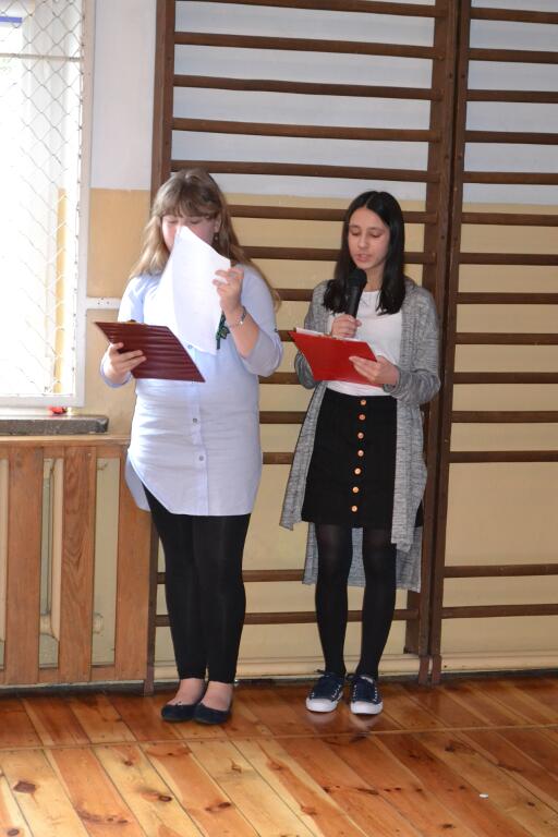 montaż słowno-muzyczny przygotowany przez uczniów wspominaliśmy ostatni tydzień życia Jezusa, ze szczególnym uwzględnieniem Jego Drogi Krzyżowej i Zmartwychwstania. Zebrani na sali: dyrekcja, nauczyciele oraz