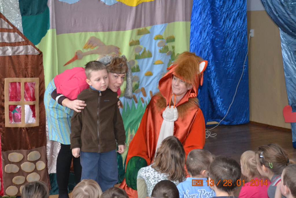 W dniu 28 stycznia 2014 r. przedszkolaki mieli okazję obejrzeć bardzo zabawne a jednocześnie pouczające przedstawienie pt: „Jak przemoc i wyzwiska zgubiły pewnego liska”, wystawione przez Studio Artystyczne „Magik” z Białegostoku.