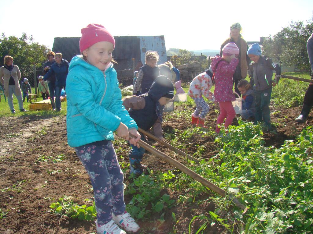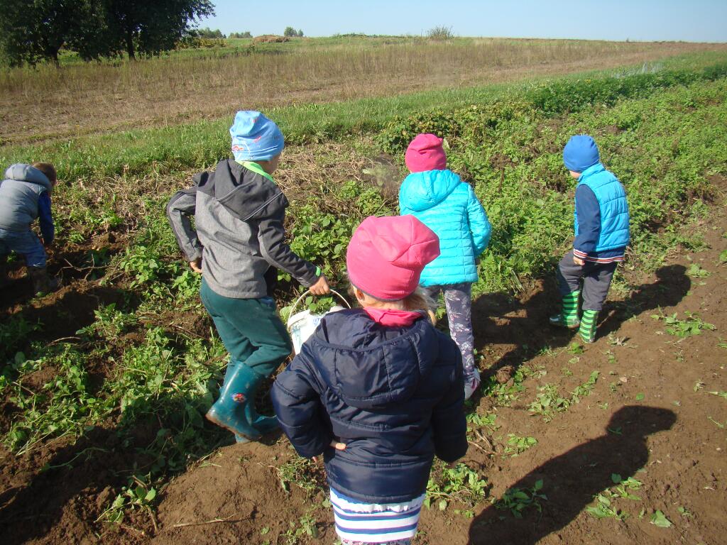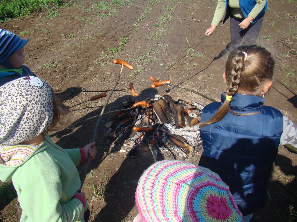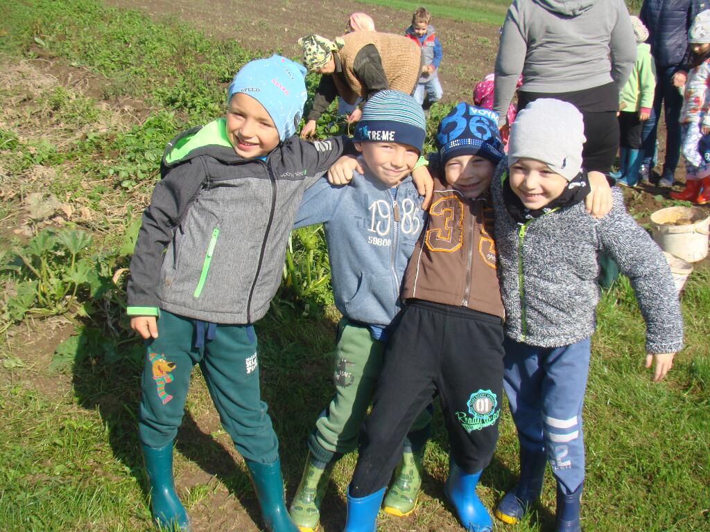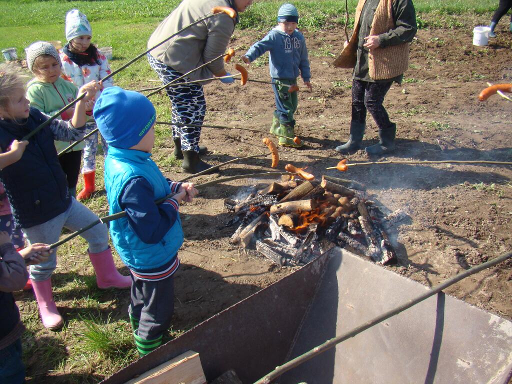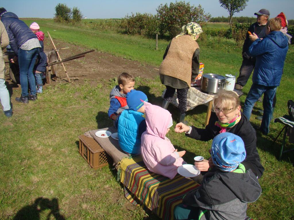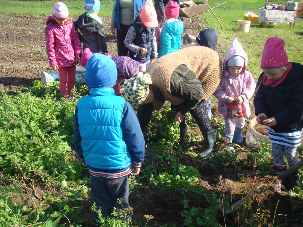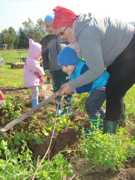 pochodzeniu, po czym z wielkim zaangażowaniem zabrały się za własnoręczne wykopywanie ziemniaków. Wielką radość sprawiło również dzieciom pieczenie kiełbasek nad ogniskiem, słodki poczęstunek przygotowany przez Panie oraz