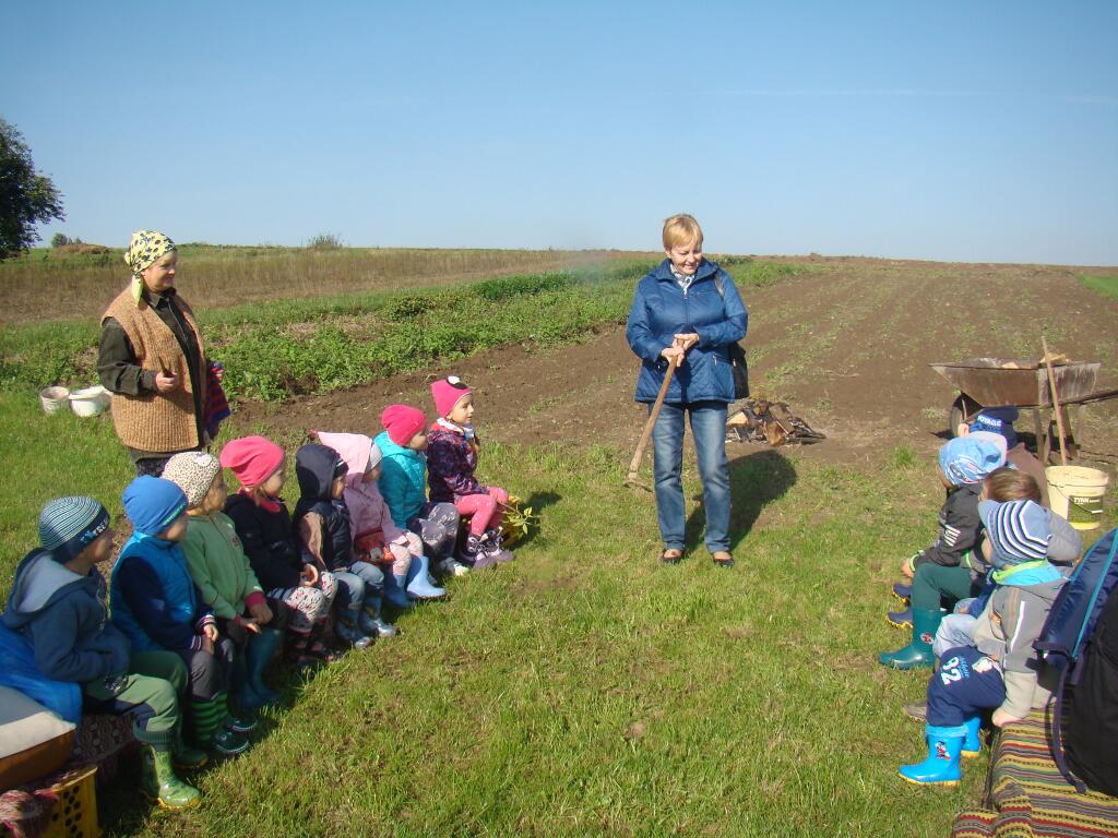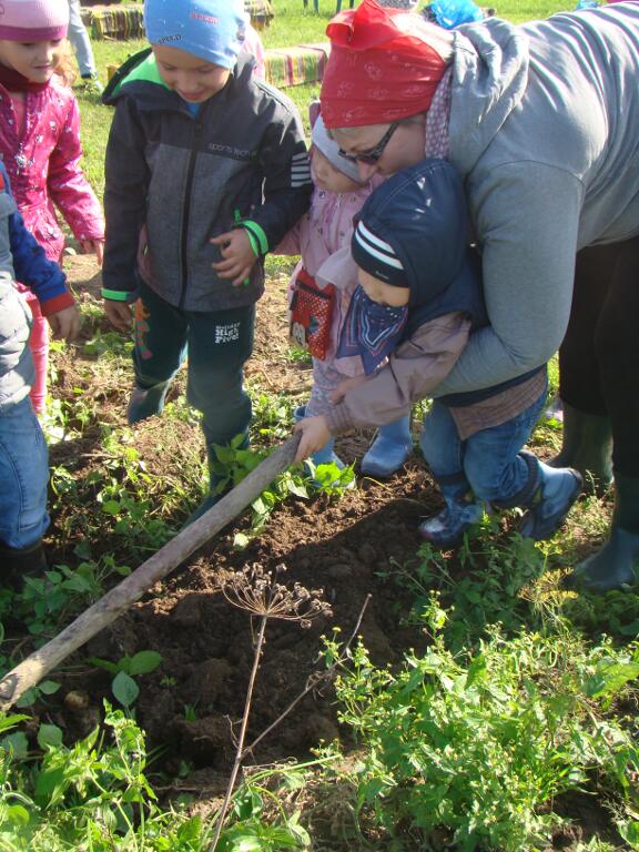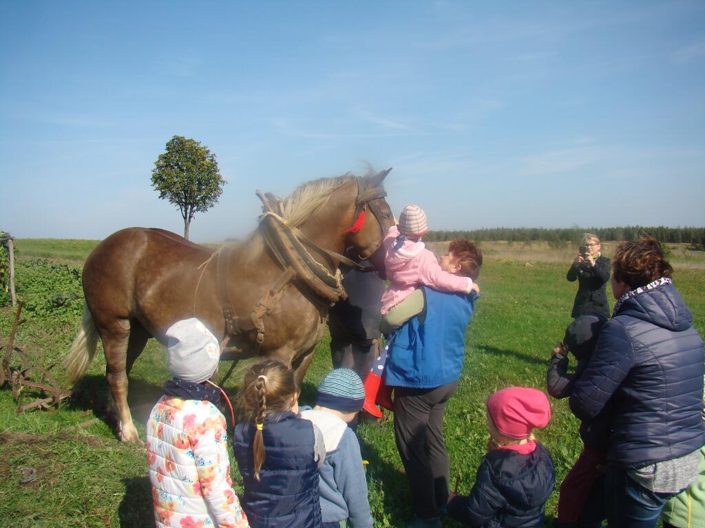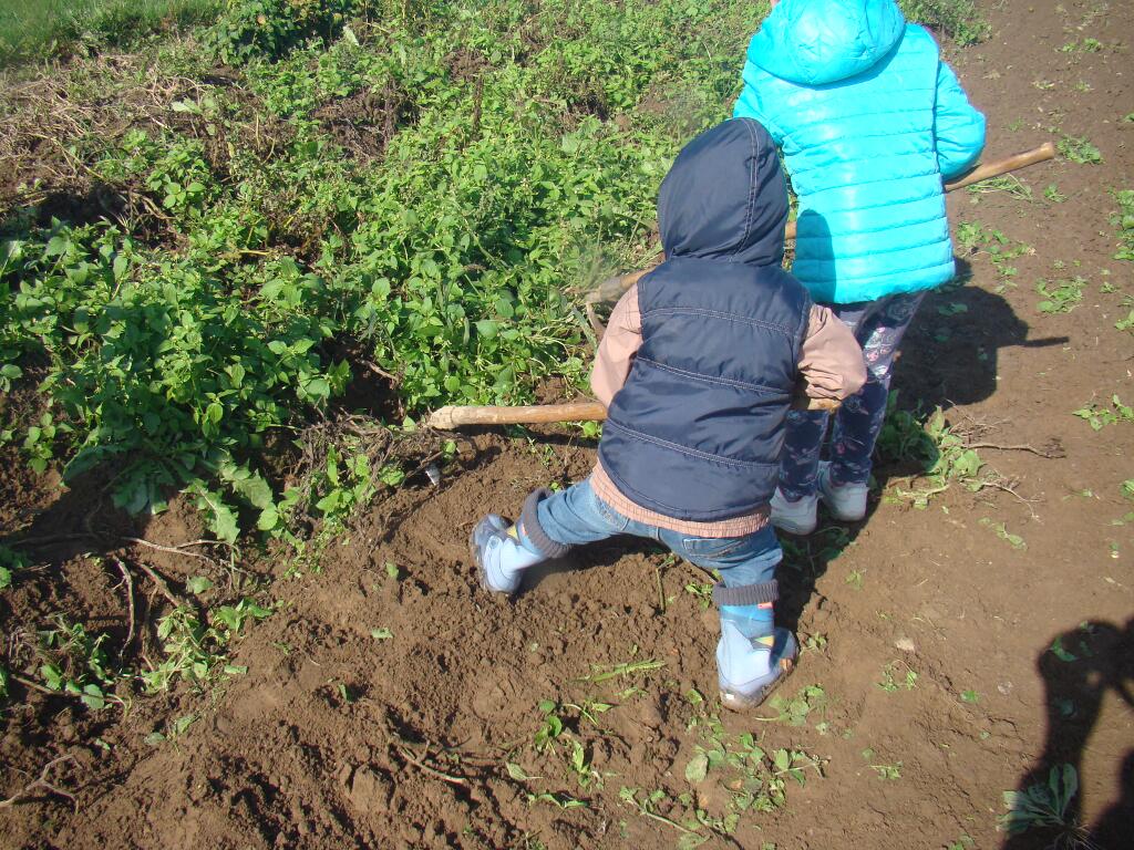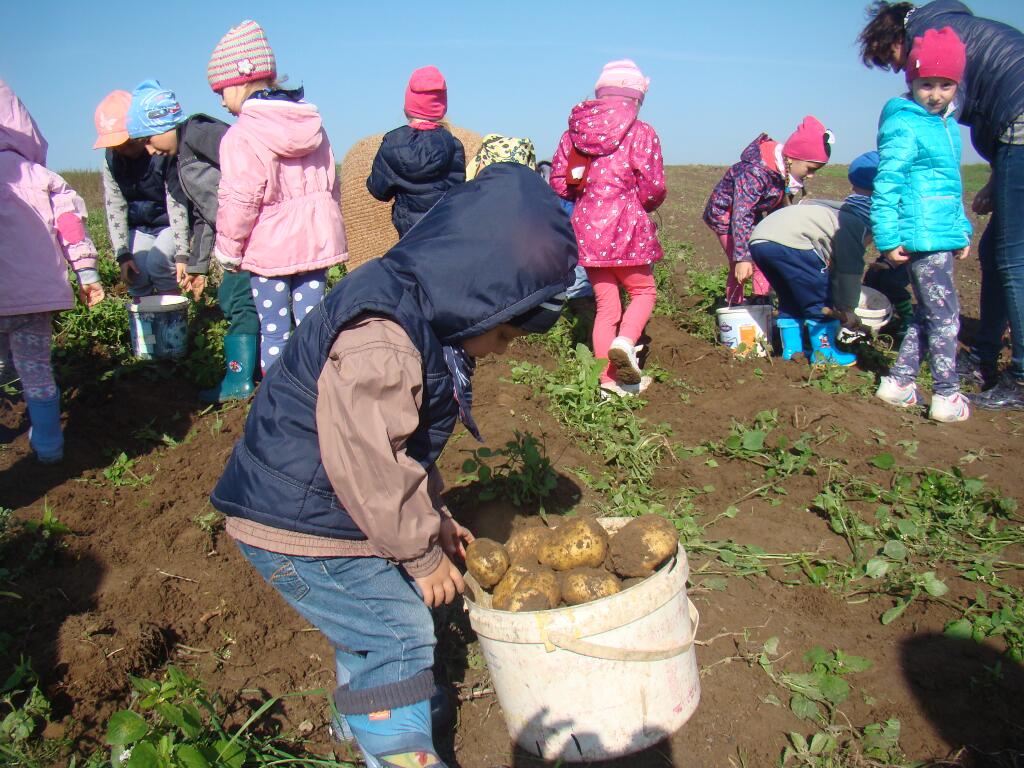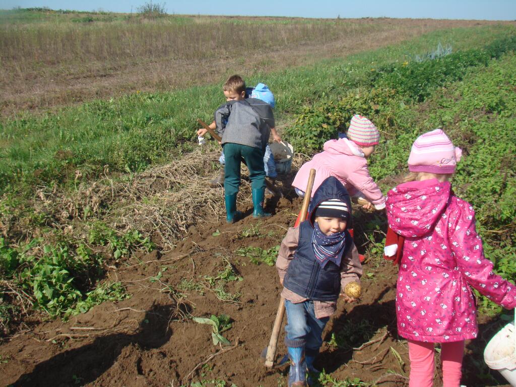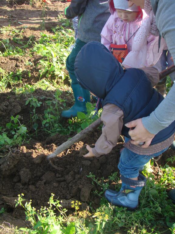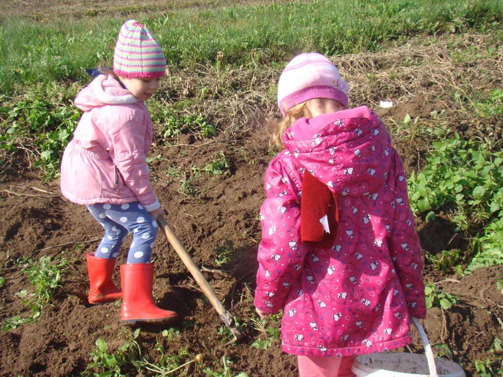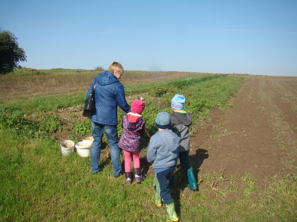 pochodzeniu, po czym z wielkim zaangażowaniem zabrały się za własnoręczne wykopywanie ziemniaków. Wielką radość sprawiło również dzieciom pieczenie kiełbasek nad ogniskiem, słodki poczęstunek przygotowany przez Panie oraz
