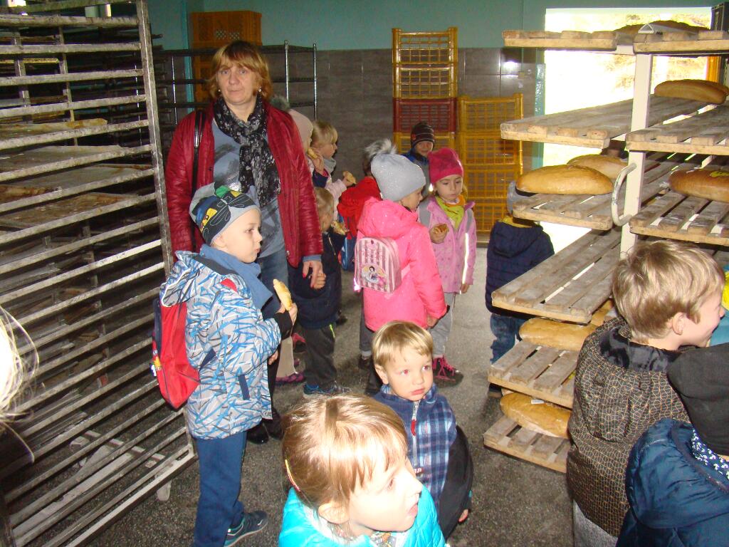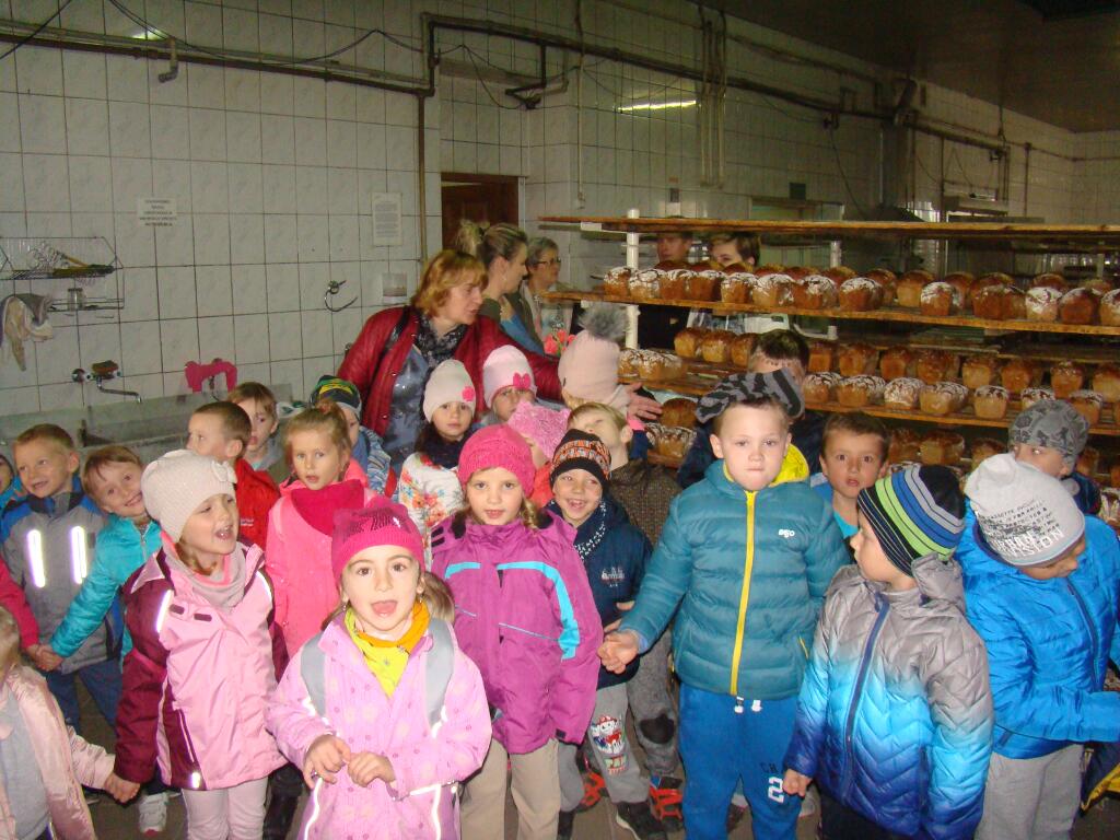 Dnia 26.10.2017r dzieci z grupy Misiów i Sówek wraz z paniami wybrały się na wycieczkę do piekarni „Jedynka” w Suchedniowie. Przedszkolaki miały okazję obejrzeć jak wygląda praca piekarza