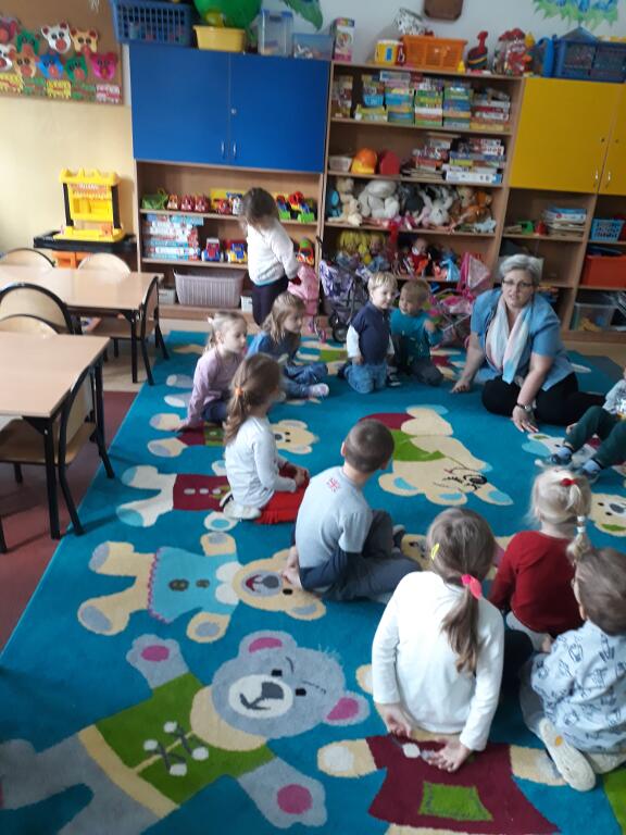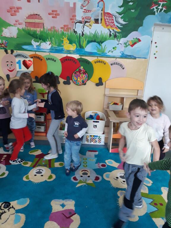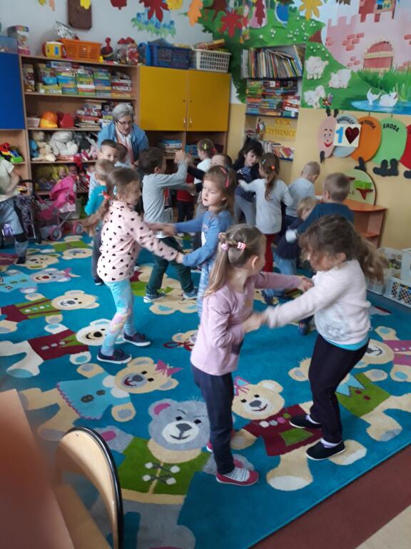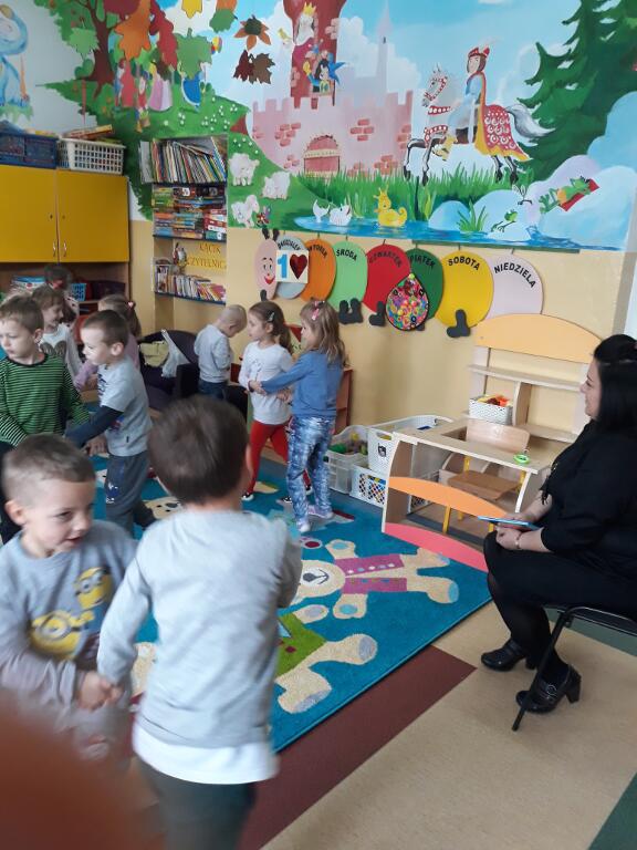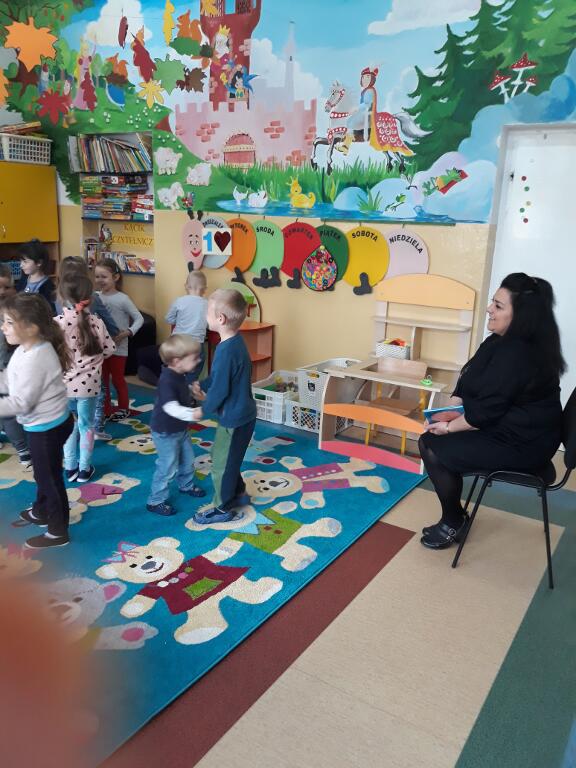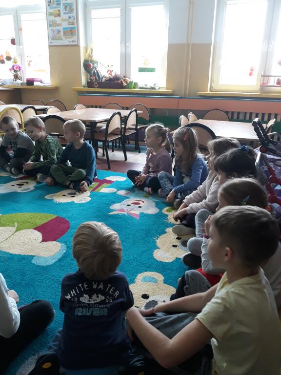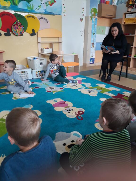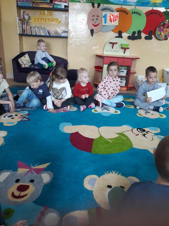wysłuchały bajki, a także oglądały kolorowe ilustracje. Na koniec dzieci bawiły się w zabawy ruchowe.
