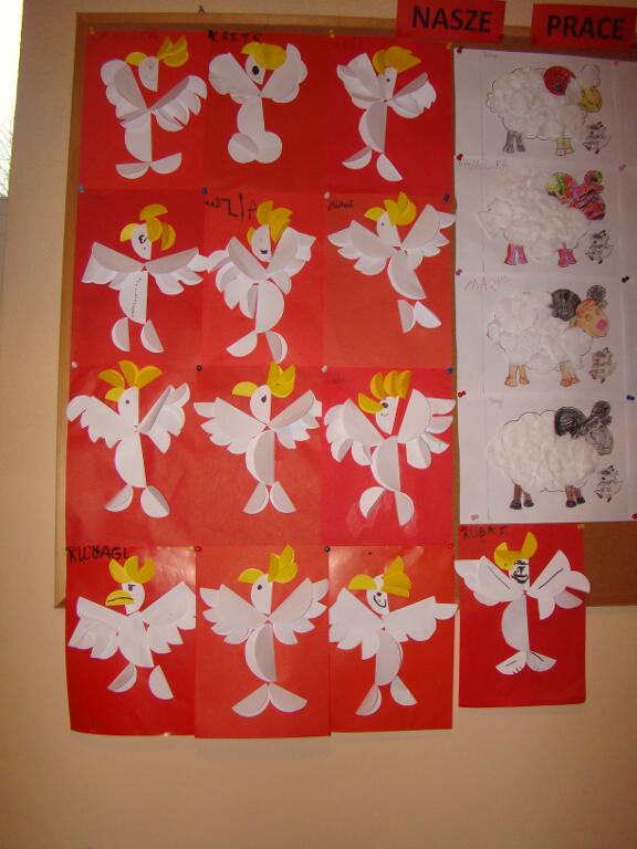Bełzy „Katechizm polskiego dziecka”, wykonały również prace plastyczne przedstawiające flagi oraz godła Polski.