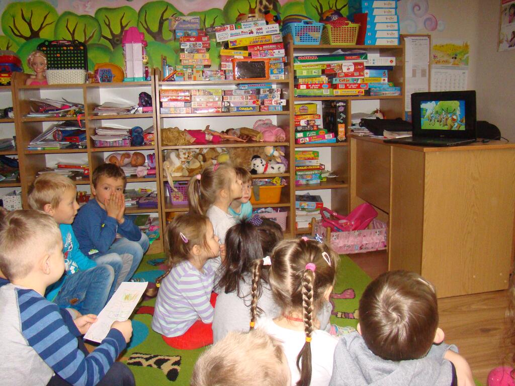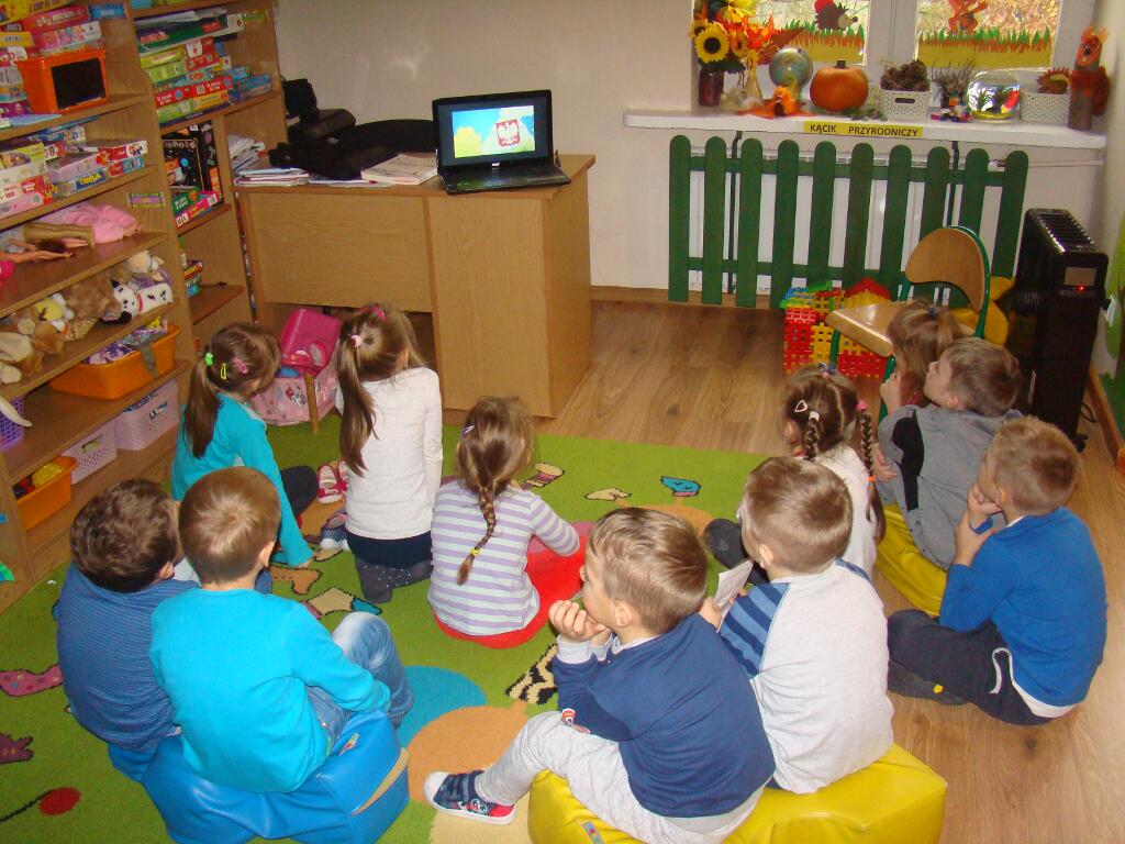 Następnie oglądając film animowany dzieci dowiedziały się o czasach gdy na naszej ziemi nie mogła rozbrzmiewać polska mowa i powiewać biało-czerwona flaga. Jak to trzy obce państwa dokonały rozbiorów naszego