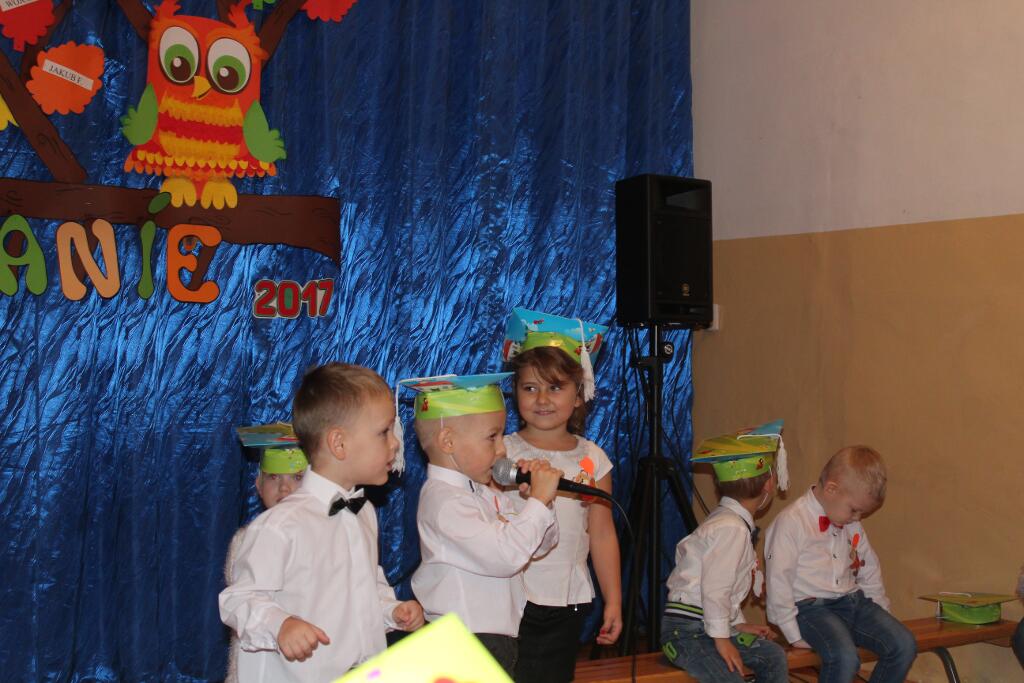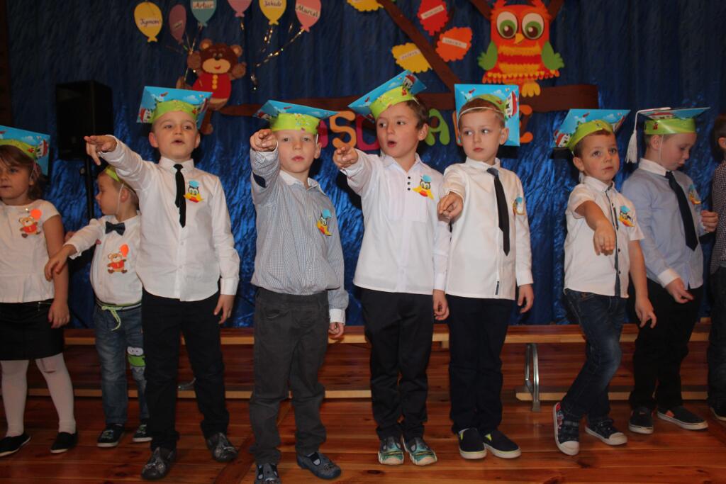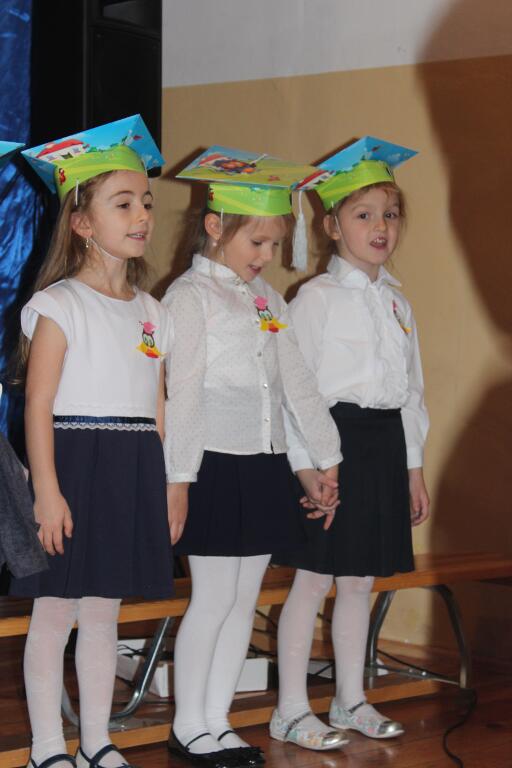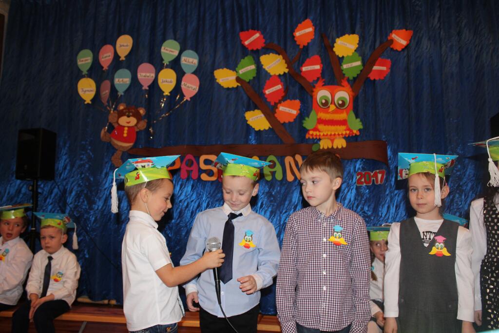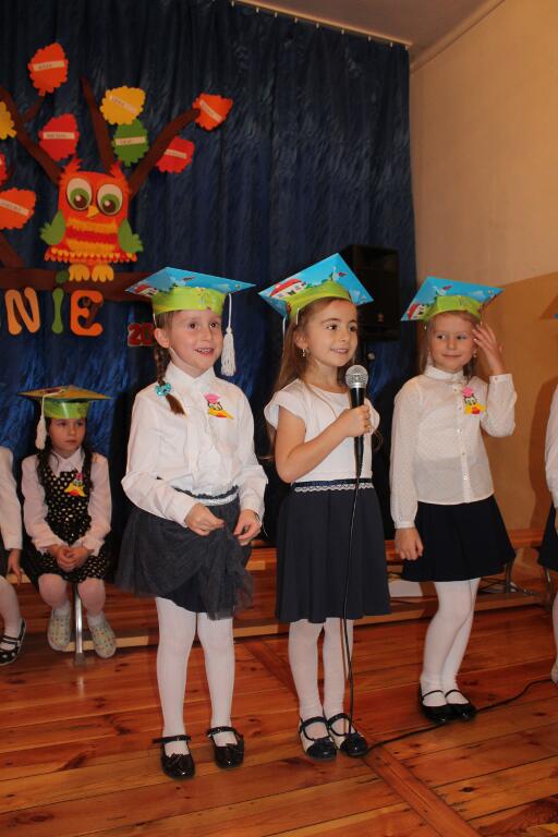 Dzieciaki w galowych strojach, z biretem na głowie, z dumą recytowały wiersze, śpiewały piosenki. Wzruszeni rodzice nagradzali gromkimi brawami swoje pociechy. Kulminacyjnym punktem było złożenie przyrzeczenia