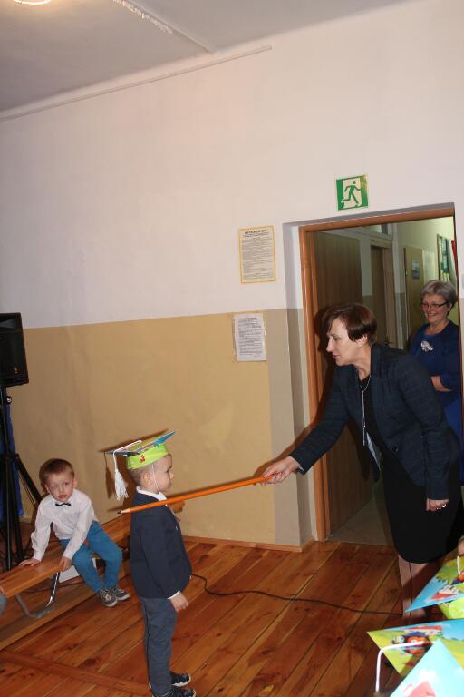 przez naszych podopiecznych oraz chwila pasowania symboliczną kredką, które przypieczętowało wcześniej złożoną przysięgę. Każdemu nowemu członkowi naszej małej społeczności został wręczony dyplom oraz upominki.