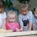 zakładając fartuszki. Poznały też składniki i sposób wykonania ciasta, potrzebne przybory kuchenne a także zasady bezpieczeństwa. Gdy wszystko było gotowe przedszkolaki z ogromnym zapałem i zaangażowaniem zabrały się