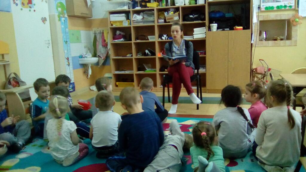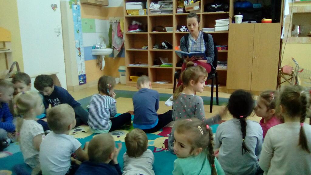 zainteresowaniem wśród dzieci cieszą się w naszym przedszkolu cykliczne spotkania z rodzicami czytającymi literaturę dziecięcą. W kolejnych miesiącach odwiedziły nas Pani Justyna Gil, która przeczytała