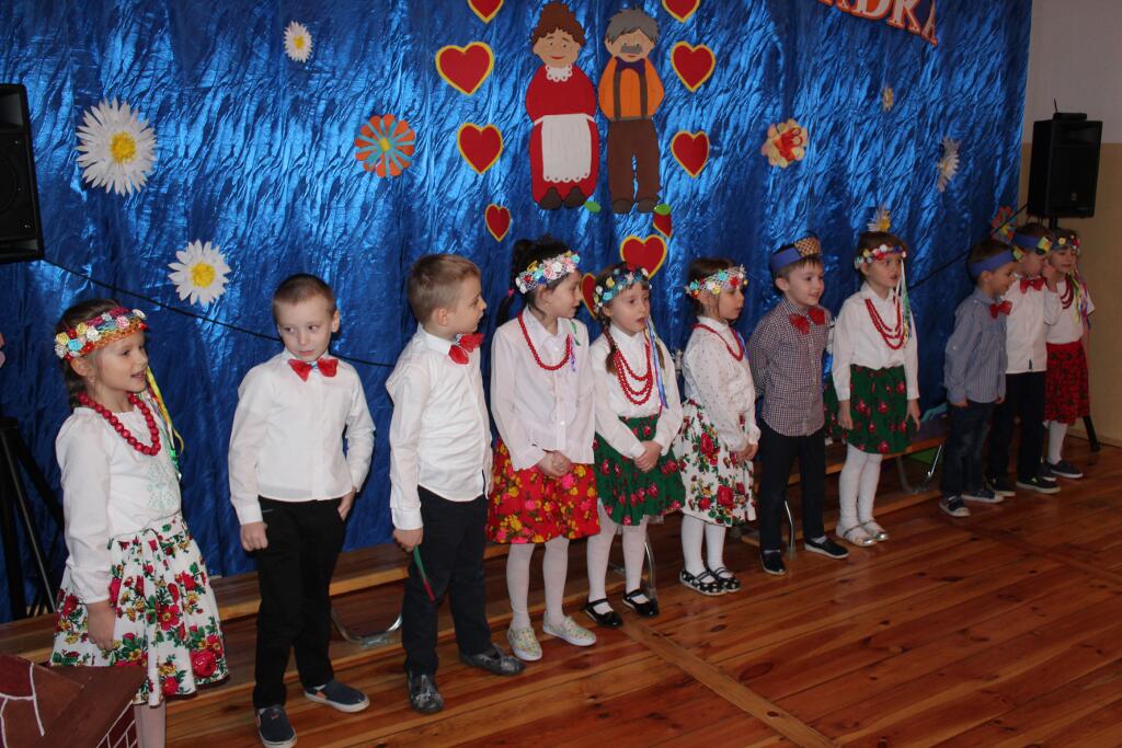 Dla swych wnuków mają zawsze czas, umieją pocieszyć, są cierpliwi, zawsze lepiej rozumieją a przede wszystkim bezgranicznie kochają. Dla nich wnuczęta są radością życia. Dlatego w podzięce za ich wielkie serce, w dniu 22 stycznia 2018r. odbyło się uroczyste spotkanie, które stało się tradycją w naszym przedszkolu. Seniorzy mogli podziwiać umiejętności swych wnuków prezentujących wiersze, piosenki i tańce. Mali artyści z dużym przejęciem i zaangażowaniem odtwarzali swoje role. W ten sposób mogli podziękować za trud włożony w ich wychowanie. Wszędzie słychać było gromkie „ Sto lat”, które bardzo wzruszało gości. Na koniec wszystkie wnuczęta obdarowały swoich bliskich własnoręcznie przygotowanymi upominkami. Goście ze wzruszeniem patrzyli na swoje pociechy i wielkimi brawami dziękowali za występy. Dopełnieniem uroczystego spotkania był słodki poczęstunek. Atmosfera była uroczysta, podniosła i pełna radości. Święto Babci i Dziadka to dzień pełen uśmiechu i wzruszeń.