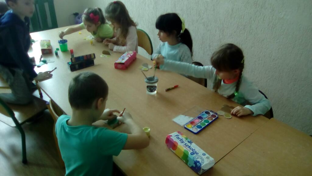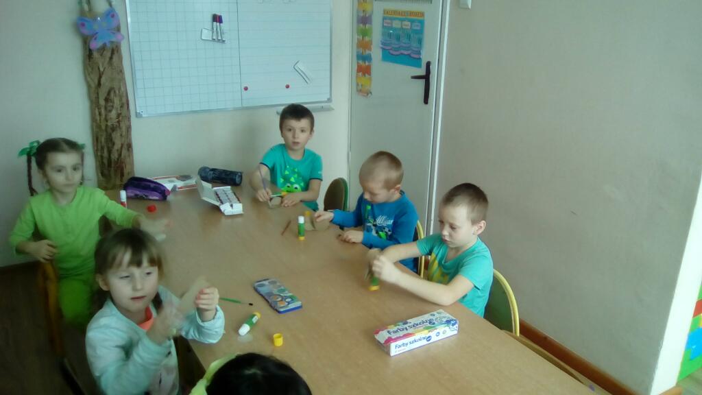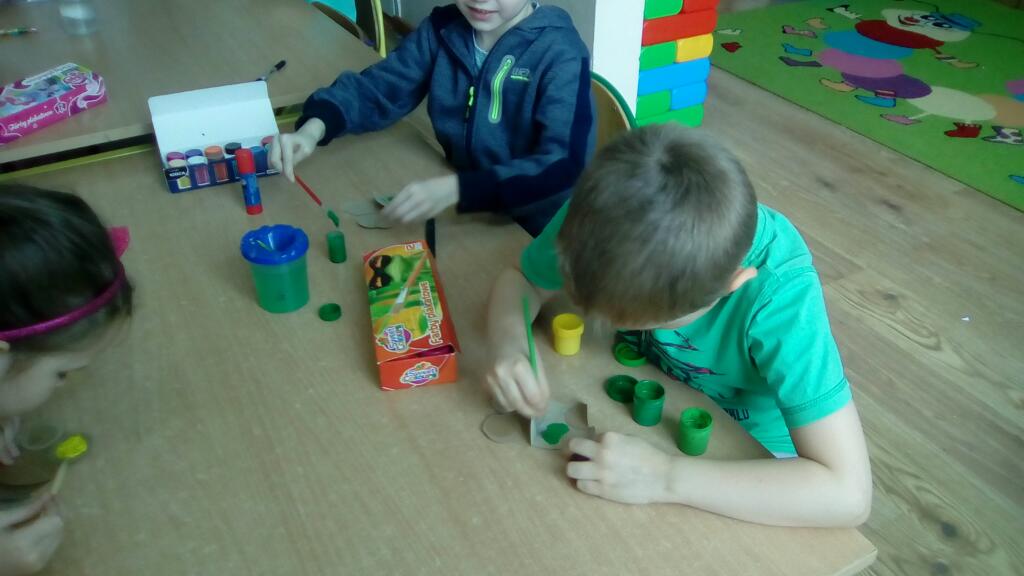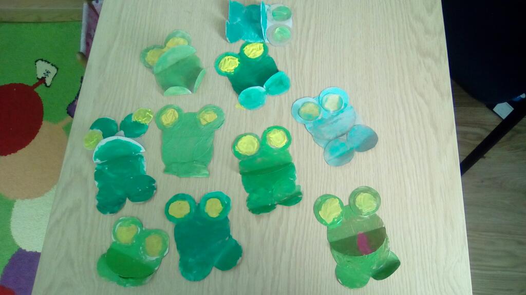 Na zakończenie dzieci zrobiły sylwety ulubionych zielonych zwierzątek- żabek.