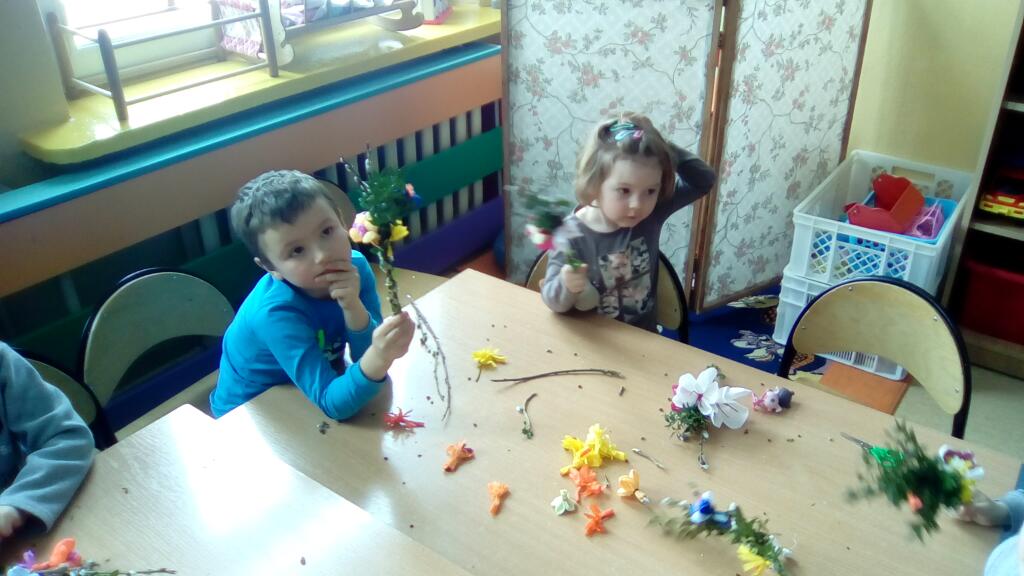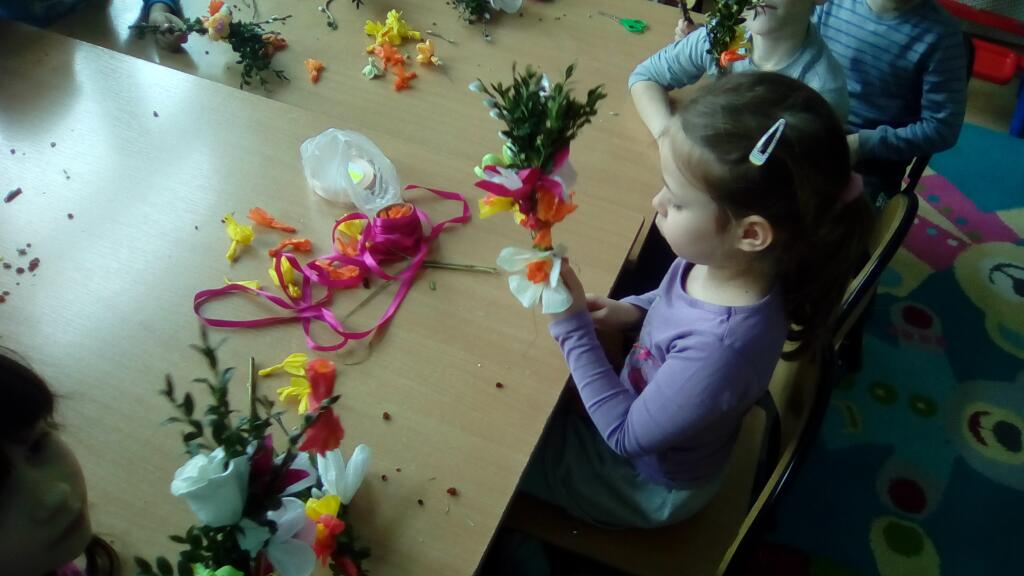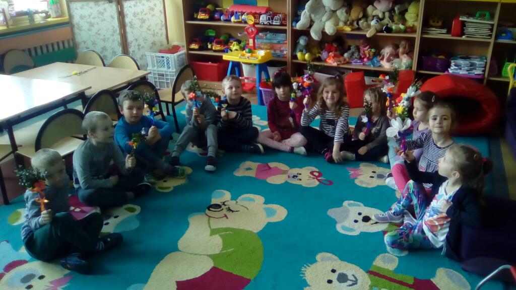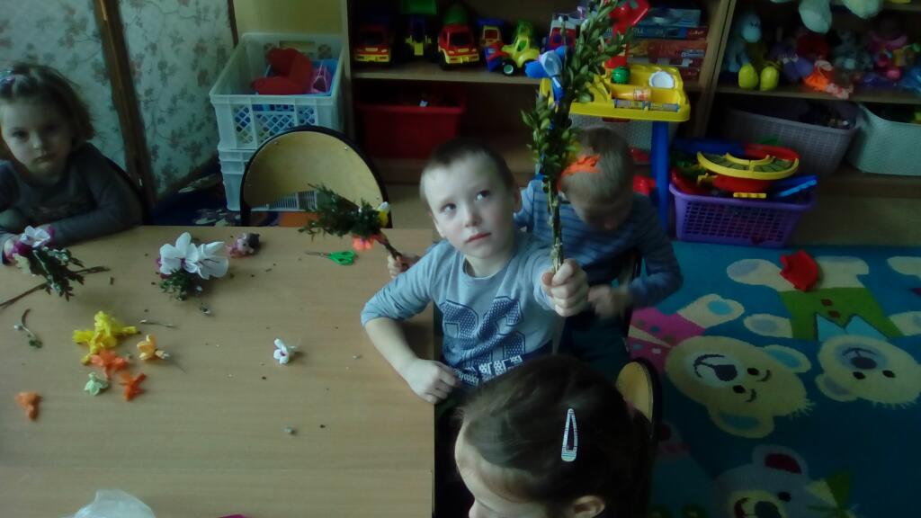 W związku z nadchodzącą Niedzielą palmową dzieci, jak to niegdyś bywało w każdym domu, wykonały przepiękne palmy wielkanocne. Każda kolorowa, bogata i jedyna w swoim rodzaju, misternie spleciona i dopracowana.