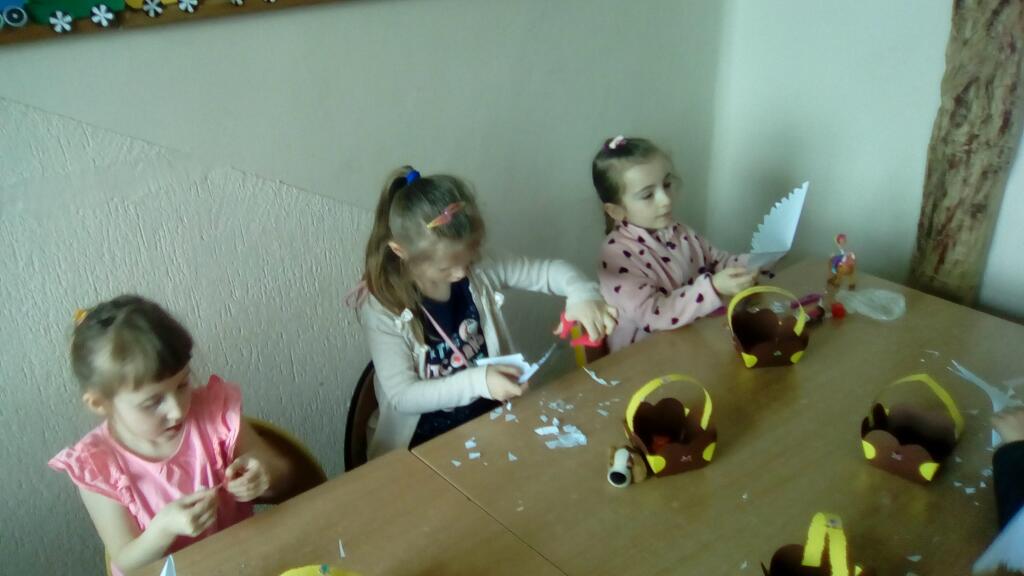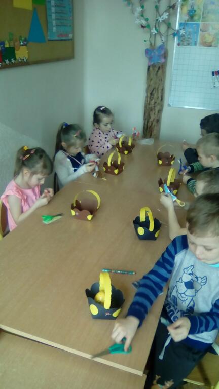Jednym z wielkanocnych zwyczajów jest także przygotowanie koszyka wielkanocnego, a więc pokarmów, które po święceniu znalazły się na naszych stołach w Wielką Niedzielę. Dzieci rozpoznawały pokarmy, które powinny znaleźć się w koszyku, uczyły się wierszy i piosenek związanych z Wielkanocą, jak również tworzyły wiele prac plastycznych, m.in.kolorowe koszyczki.