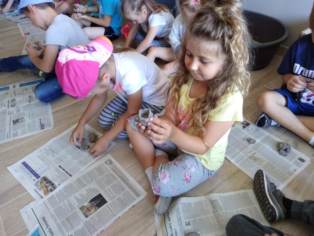 Sama zabawa gliną była dla dzieci czystą przyjemnością, a kiedy zaczęły powstawać małe arcydzieła, dzieci były zachwycone. Wałkowały glinę, doklejały brakujące elementy swoim dziełom. Zanim powstała