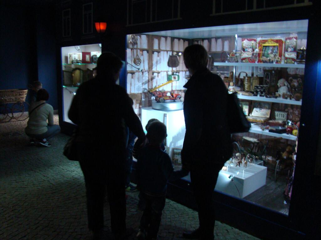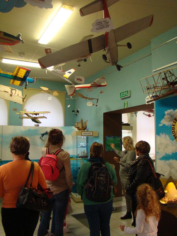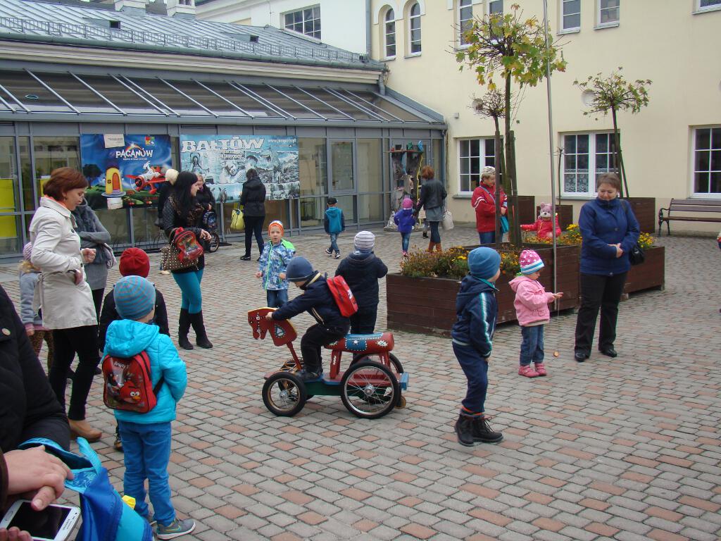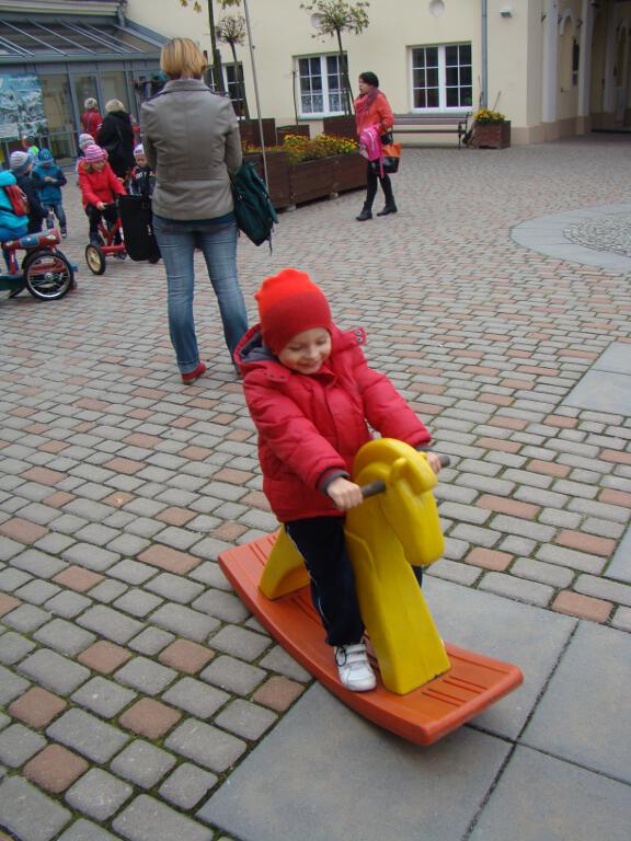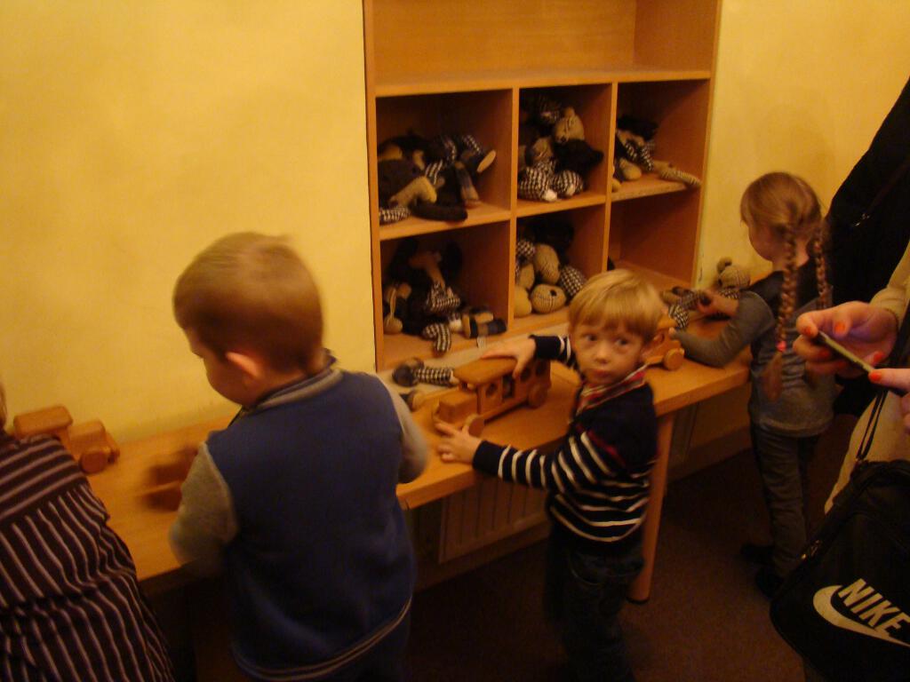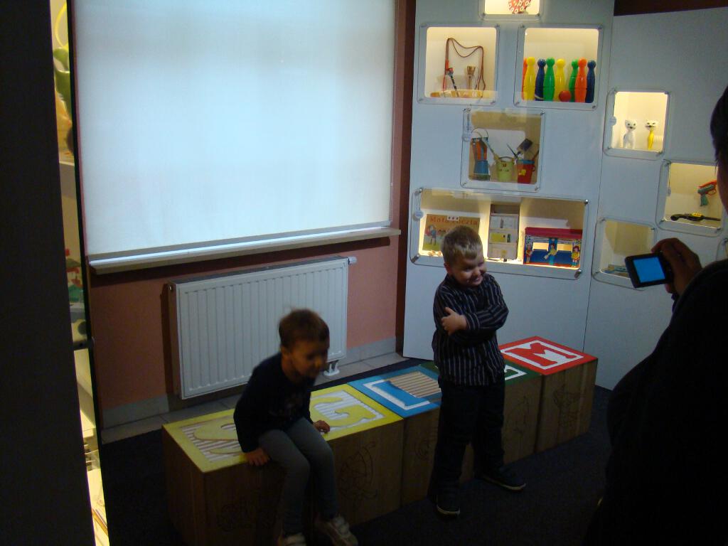 Kolejnym punktem wycieczki było Muzeum Zabawek. Maluchy z zaciekawieniem obejrzały wystawę prezentującą zabawki wykonane na przestrzeni kilku wieków. Najciekawsza okazała się wystawa modeli statków i samolotów. Uwieńczeniem pobytu w muzeum była wspólna zabawa w sali pełnej pluszowych maskotek i klocków oraz integracja grupy na placu muzealnym. Dzieci na kilka chwil „przeniosły się” na początek XX w. i sprawdziły, na jakich wówczas jeździło się na rowerach.