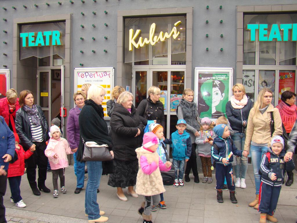 Dnia 22 października 2014 roku dzieci z rodzicami z naszego przedszkola udały się na wycieczkę, do teatru Lalki i Aktora „Kubuś” w Kielcach i obejrzały bajkę pt. „O Pryszczycerzu i Królewnie Pięknotce” autorstwa Marty Guśniowskiej.