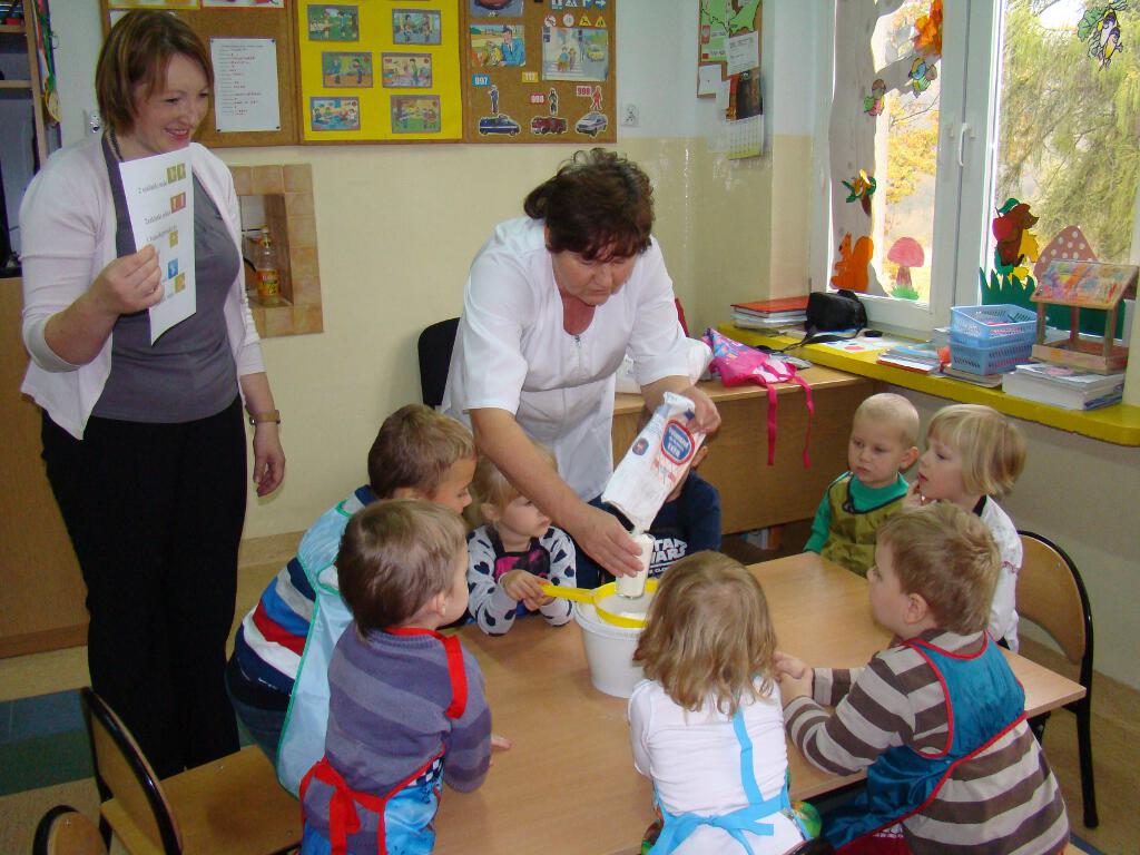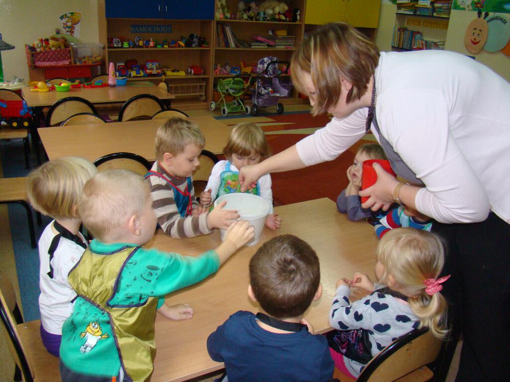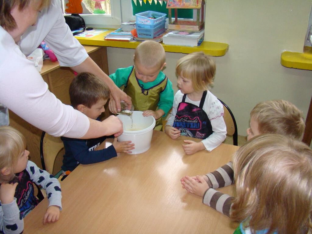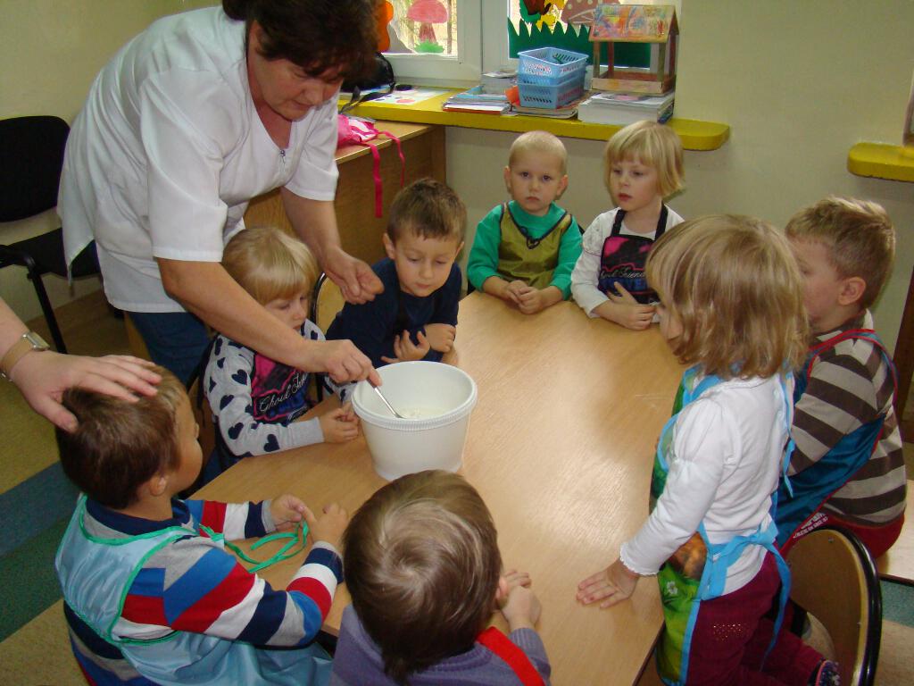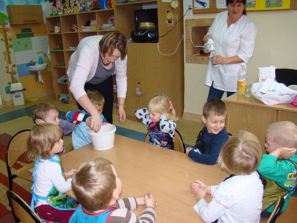 Dzieci miały możliwość przygotowania pysznych gofrów. Zajęcia kulinarne są również doskonałą zabawą, a potrawy własnoręcznie zrobione smakują wyśmienicie. Żadne dziecko nie odmówiło skosztowania tego co wspólnie zostało przygotowane. Gdy nadeszła upragniona chwila dzieci usiadły do stolików i zajadały się goframi z dżemem i cukrem pudrem. Zapach pieczonych gofrów był w całej sali.