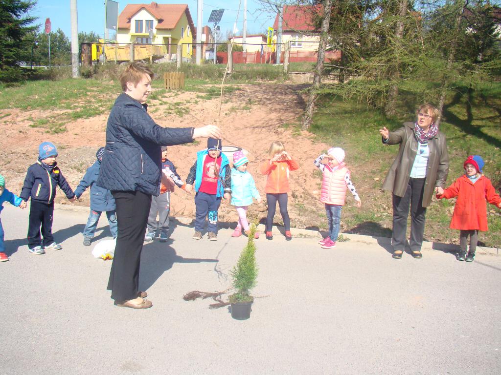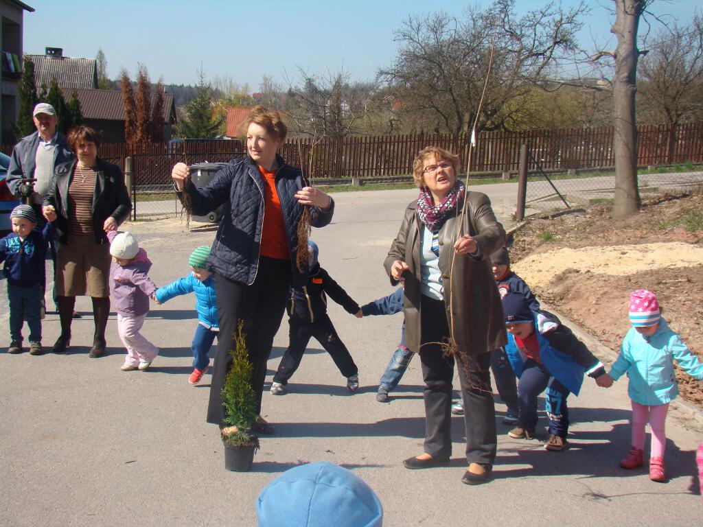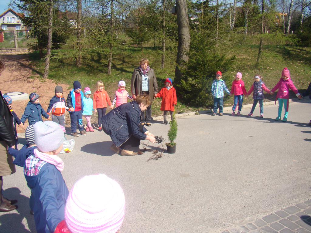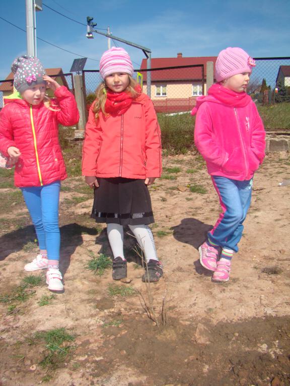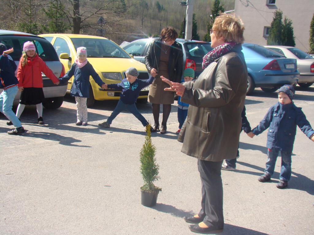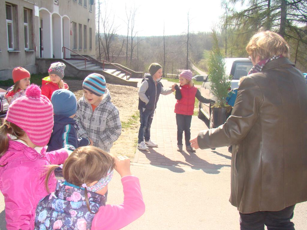 Na zakończenie zrobiły prezent naszej planecie - posadziły w ogrodzie szkolnym cztery drzewka - klona, buka, kalinę i tuję, które otrzymały za zebraną makulaturę w akcji „Drzewko za makulaturę” organizowanej przy współpracy z Nadleśnictwem Starachowice.