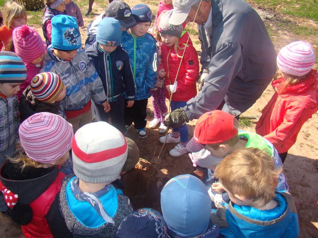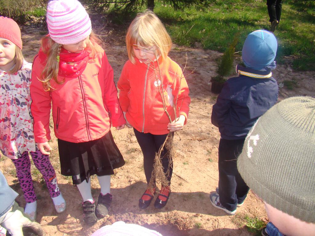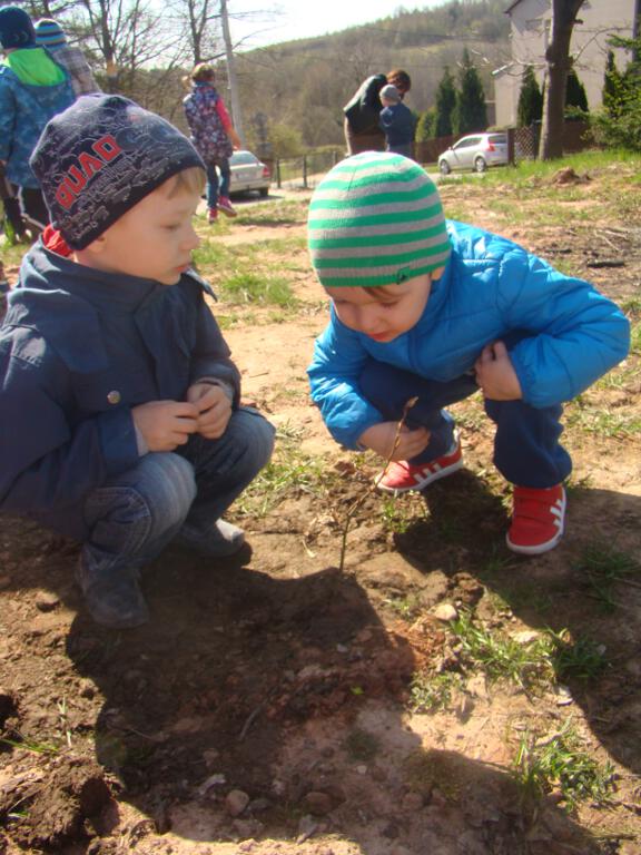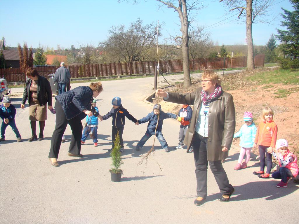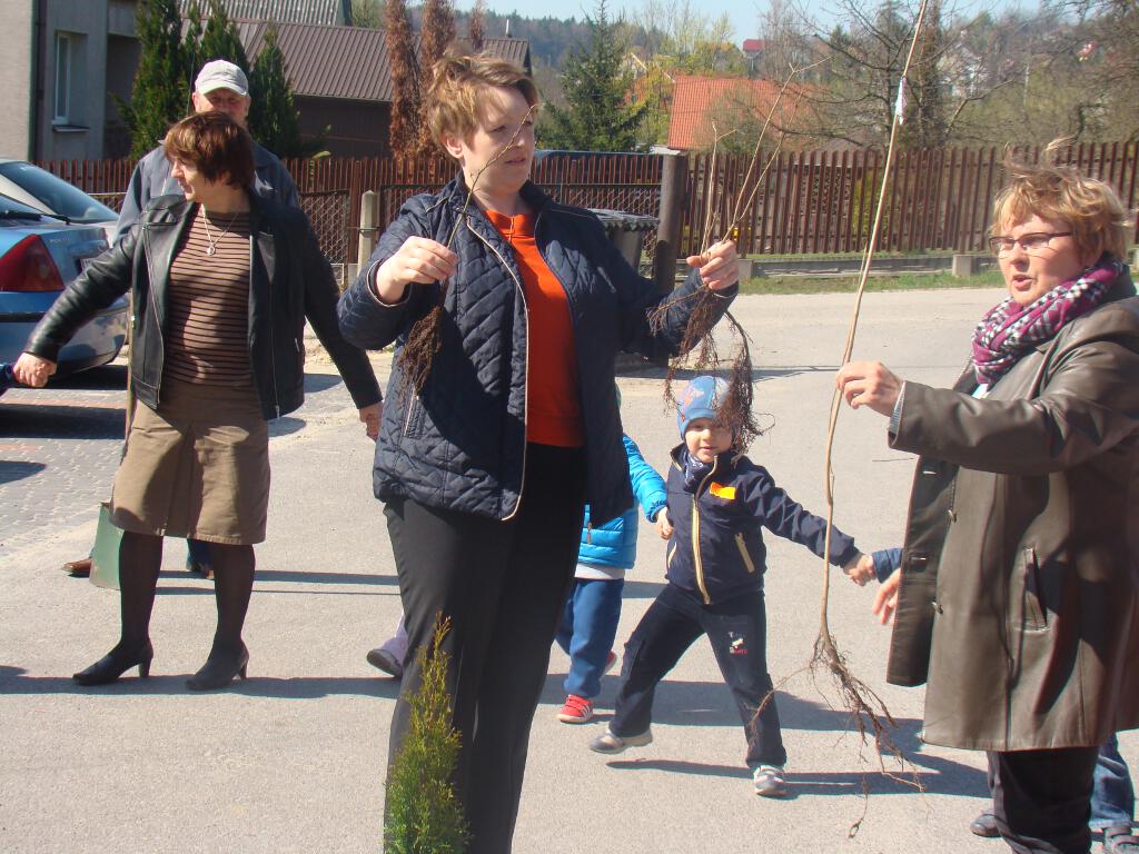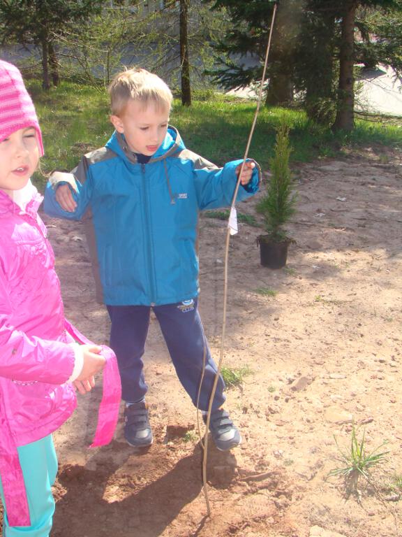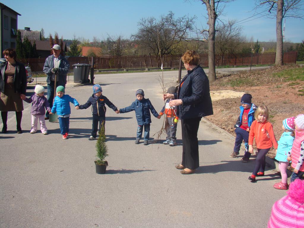 Na zakończenie zrobiły prezent naszej planecie - posadziły w ogrodzie szkolnym cztery drzewka - klona, buka, kalinę i tuję, które otrzymały za zebraną makulaturę w akcji „Drzewko za makulaturę” organizowanej przy współpracy z Nadleśnictwem Starachowice.