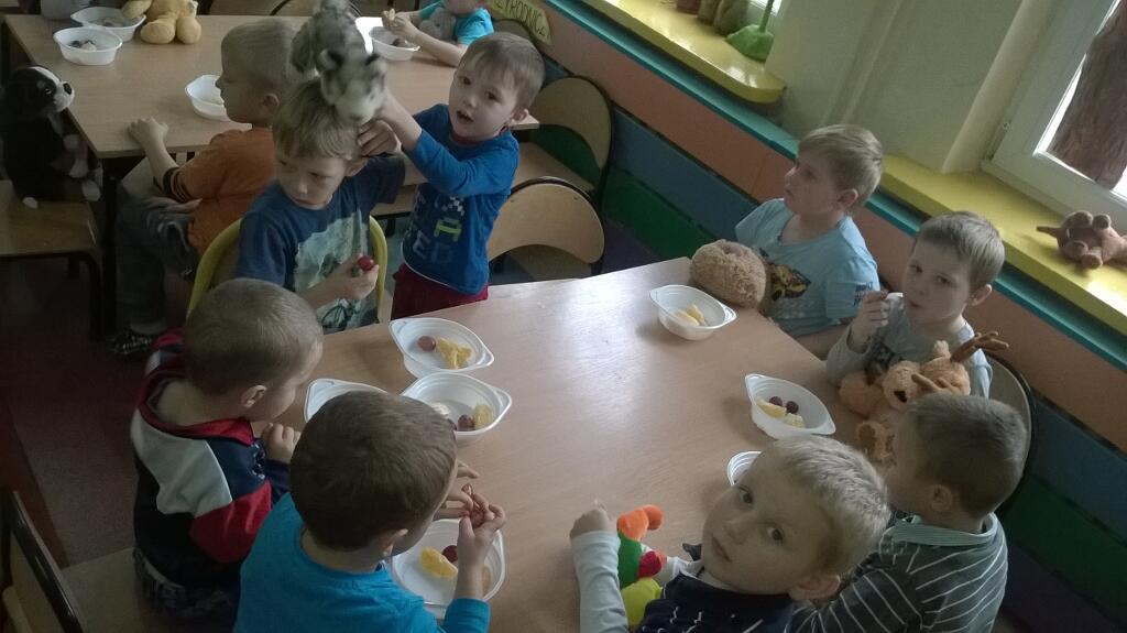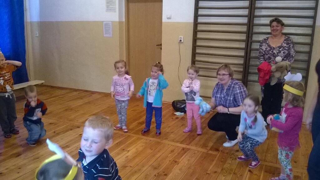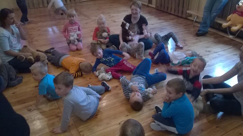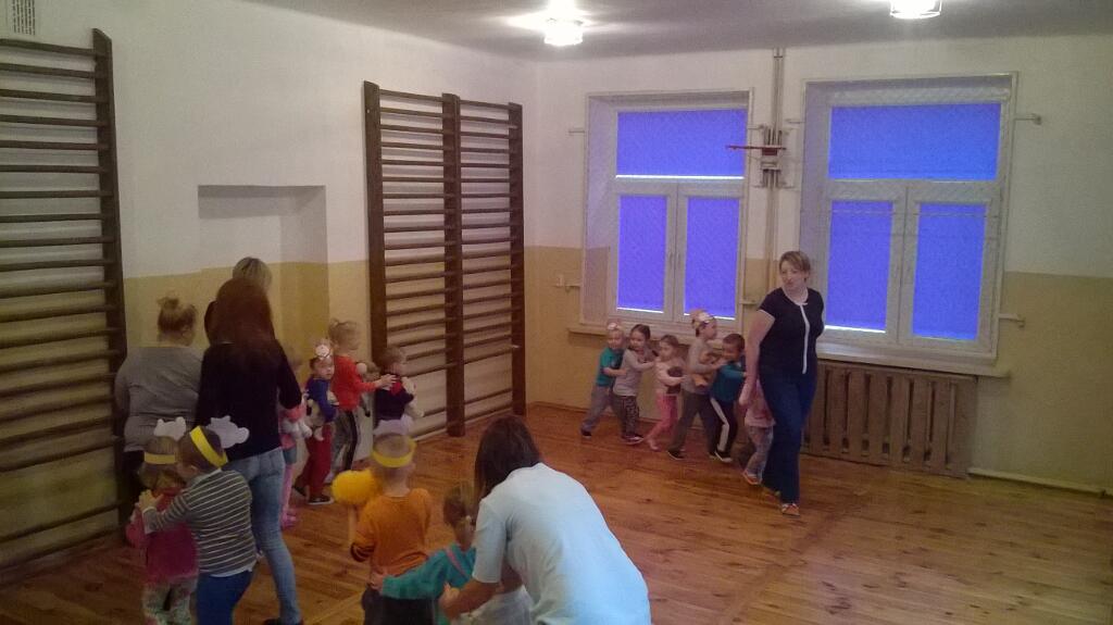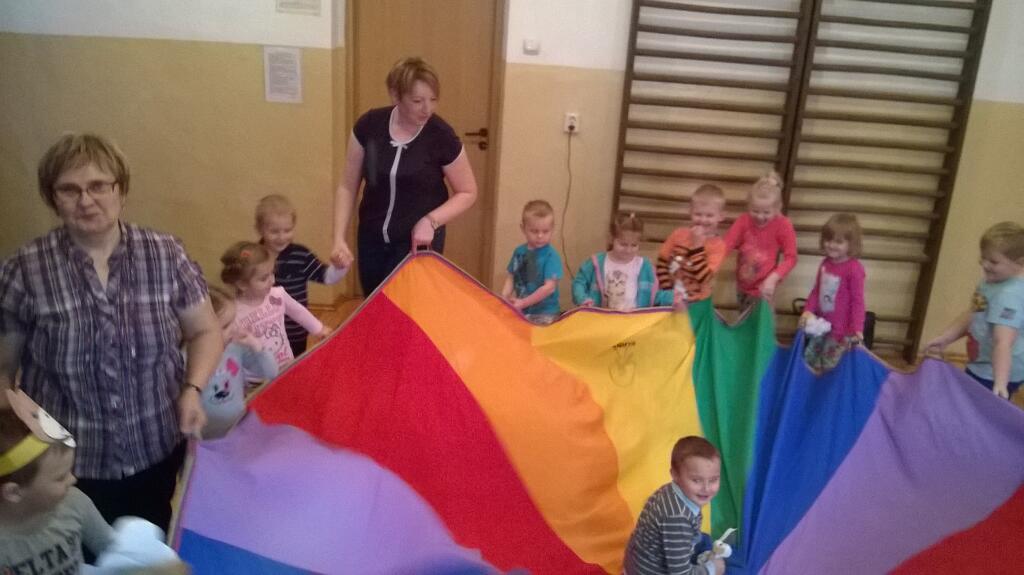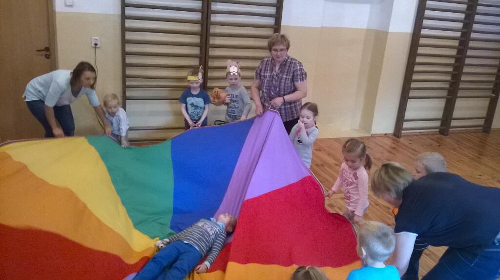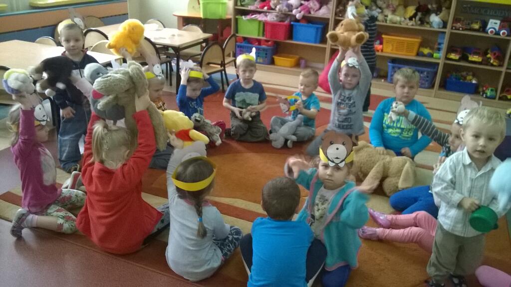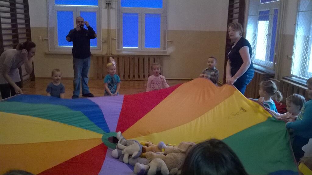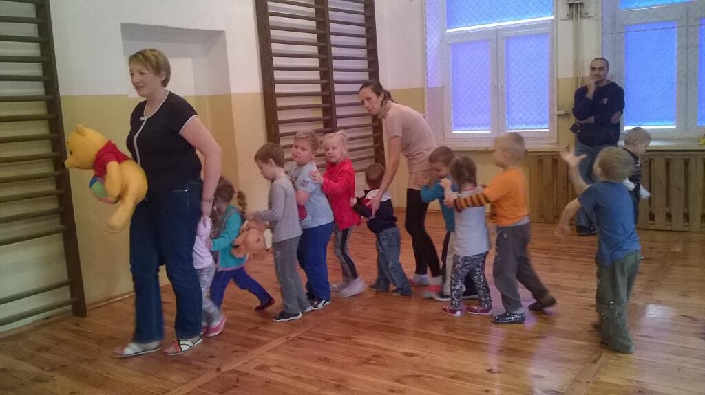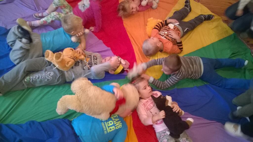 Uroczysty dzień rozpoczął się od wspólnego, owocowego poczęstunku. Następnie przedszkolaki zostały zaproszone do wspólnej zabawy wraz z rodzicami w misiowej krainie. Wspólnie bawiły się przy piosenkach: "Stary niedźwiedź", 'Jadą, jadą misie". Ale największą radość sprawiła dzieciom zabawa z chustą animacyjną, w której uczestniczyli również rodzice.