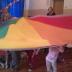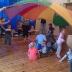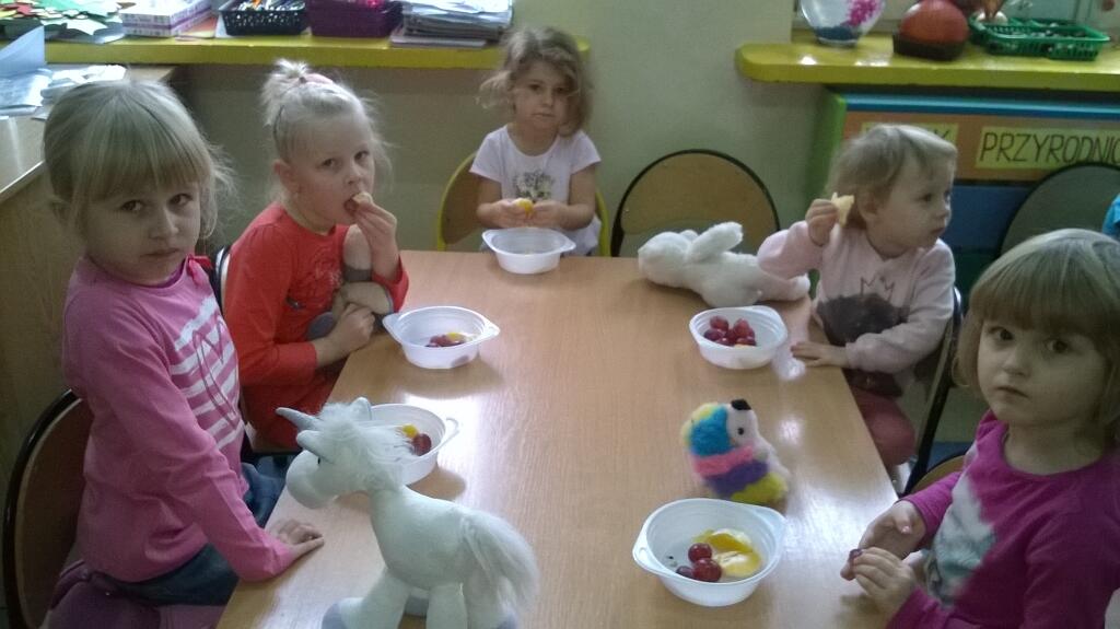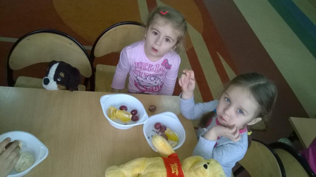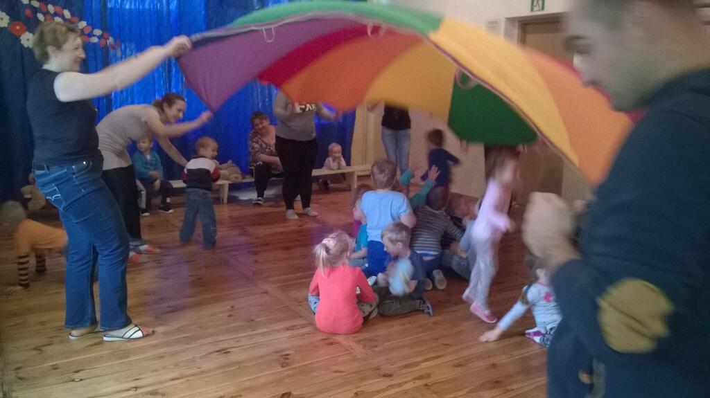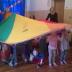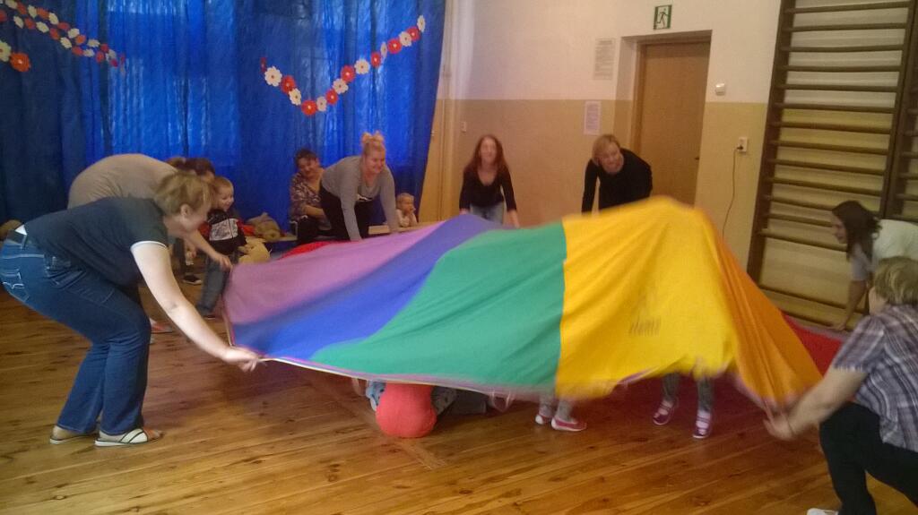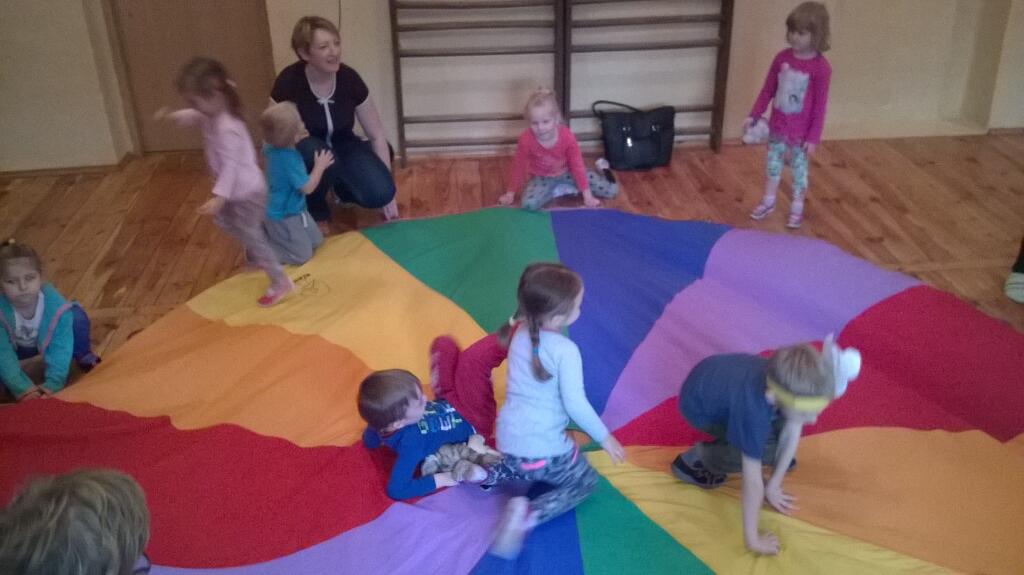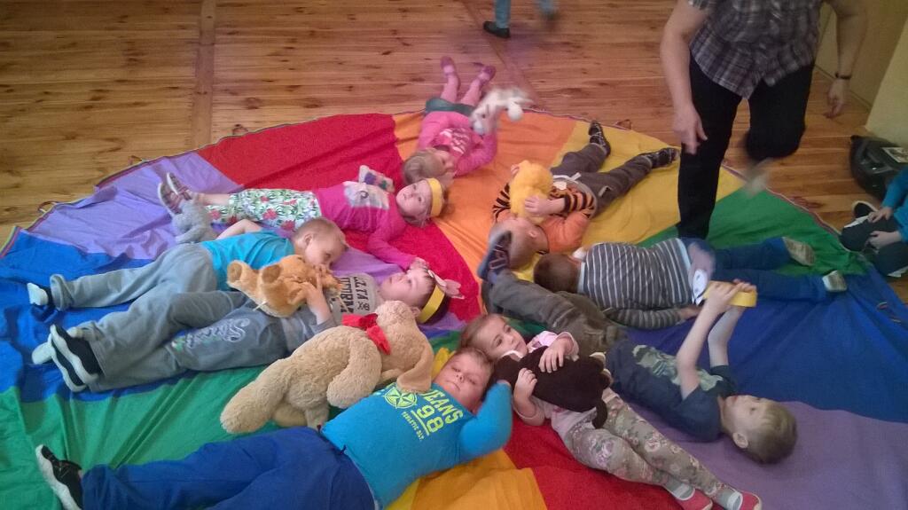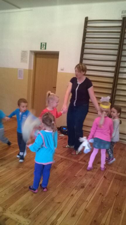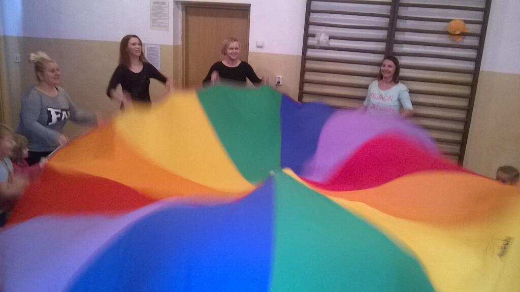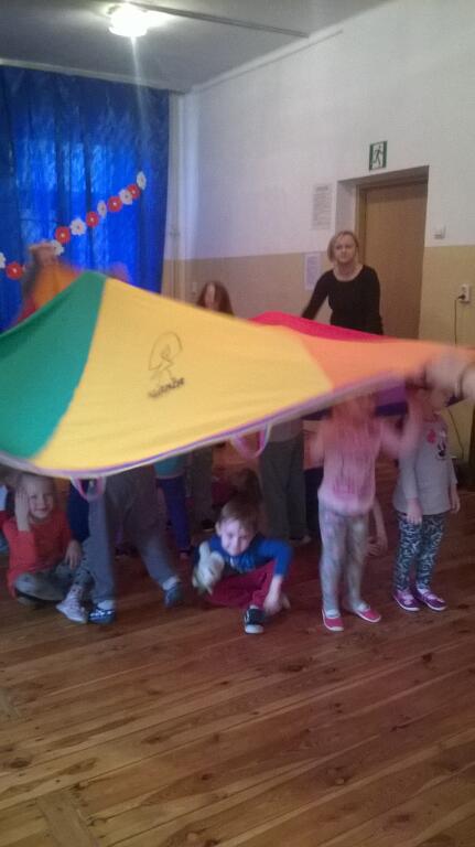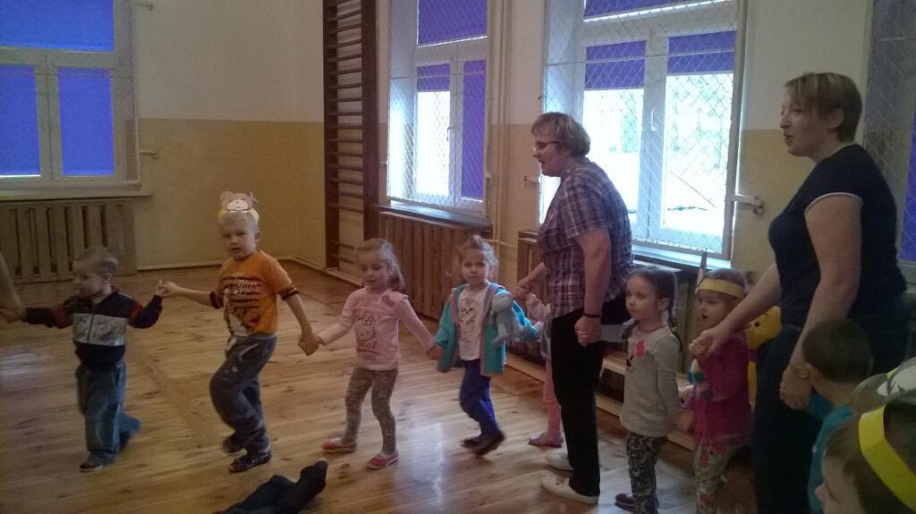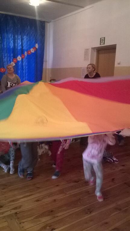 Uroczysty dzień rozpoczął się od wspólnego, owocowego poczęstunku. Następnie przedszkolaki zostały zaproszone do wspólnej zabawy wraz z rodzicami w misiowej krainie. Wspólnie bawiły się przy piosenkach: "Stary niedźwiedź", 'Jadą, jadą misie". Ale największą radość sprawiła dzieciom zabawa z chustą animacyjną, w której uczestniczyli również rodzice.