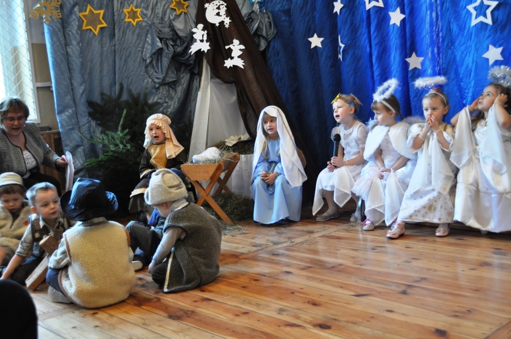 22 grudnia w naszym przedszkolu odbyły się Jasełka Bożonarodzeniowe. Przedstawienie było wyjątkowe. Dzieci z dużym zaangażowaniem odgrywały swoje role, przeżywały magię Świąt Bożego Narodzenia, ku uciesze swoich rodziców, w przepięknych strojach przedstawiły historię narodzin Dzieciątka Jezus, oprawioną kolędami, pastorałkami i tańcami. Piękna scenografia nadała temu wyjątkowemu spotkaniu uroczysty i nastrojowy klimat.
