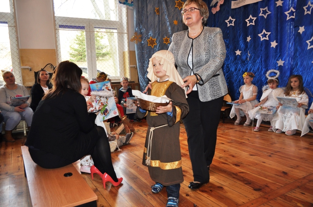 Rodzice z zachwytem podziwiali swoje pociechy występujące na scenie. Jasełka obejrzeli również pracownicy przedszkola oraz zaproszeni goście - radni Edward Chaba, Mirosław Nyga oraz panie z Koła Gospodyń Wiejskich w Goździe. Gdy tylko oklaski ustały, wszyscy zebrani na sali podzielili się opłatkiem, składając sobie świąteczne życzenia.