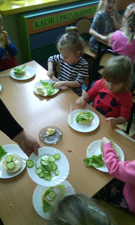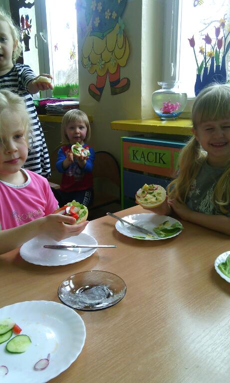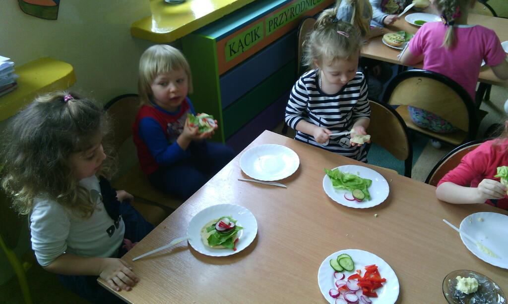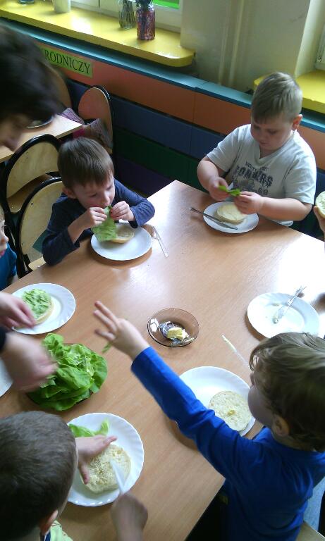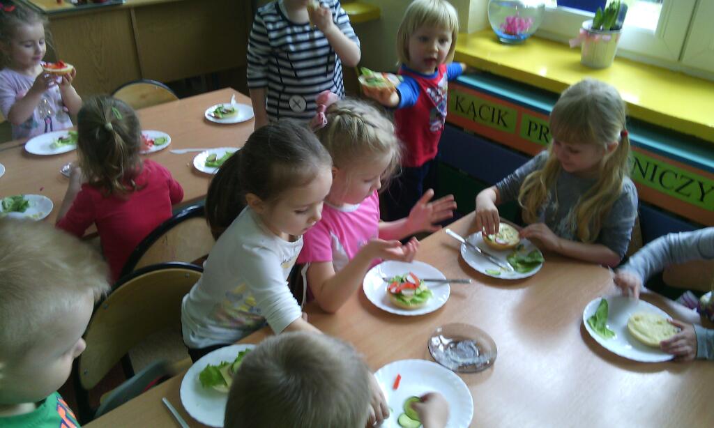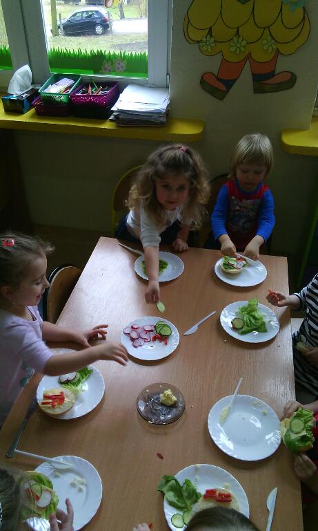 Zajęcia kulinarne wiosną, to sama przyjemność! Świeże warzywa: sałata, rzodkiewki i ogórki to doskonałe produkty, które świetnie smakują i mają mnóstwo witamin. Pamiętajmy, że najlepiej smakują kanapki wykonane własnoręcznie, a z tym dzieci nie miały najmniejszego problemu :)