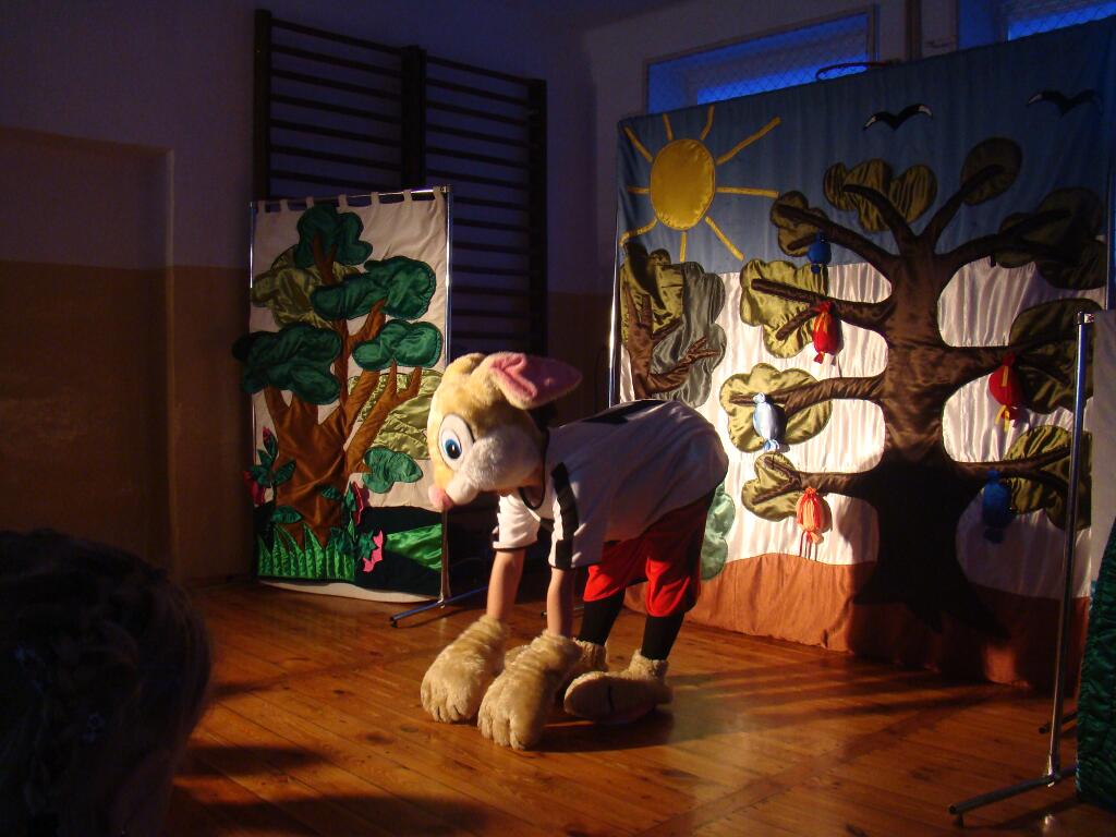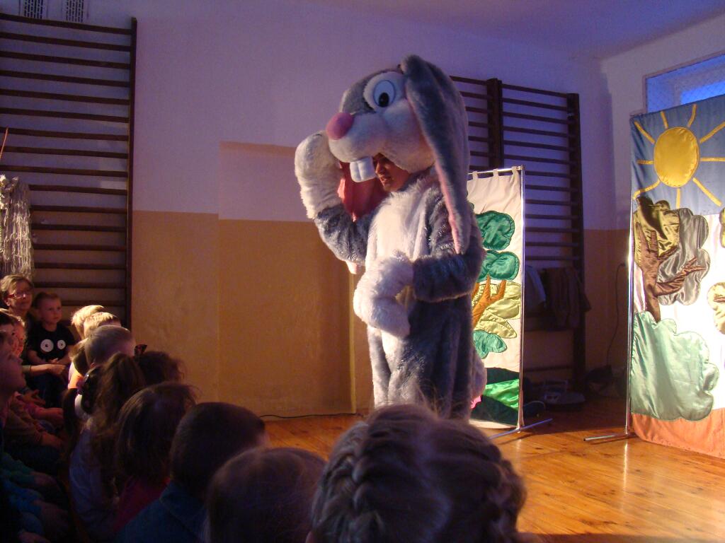 W piątek 15 kwietnia przedszkolaki obejrzały przedstawienie w wykonaniu Grupy Artystycznej „Patigo” pod tytułem „Króliczek-wędrowniczek”.