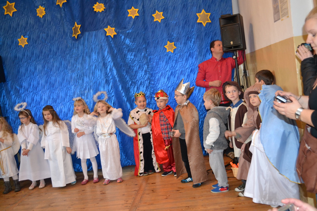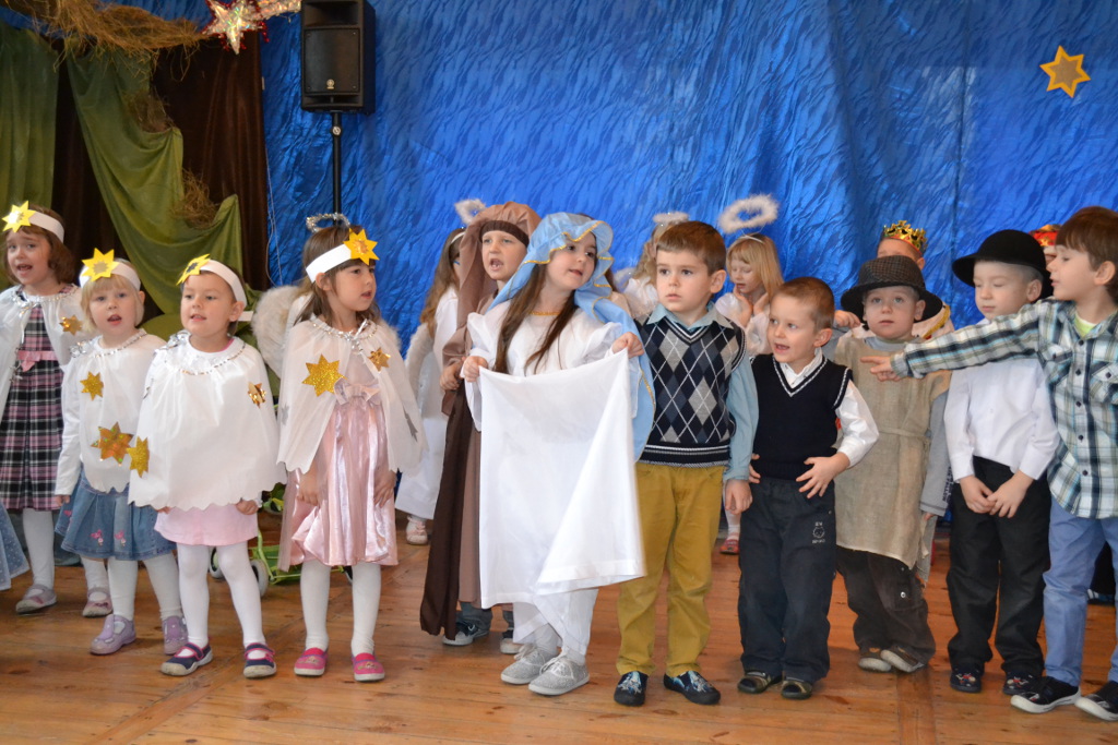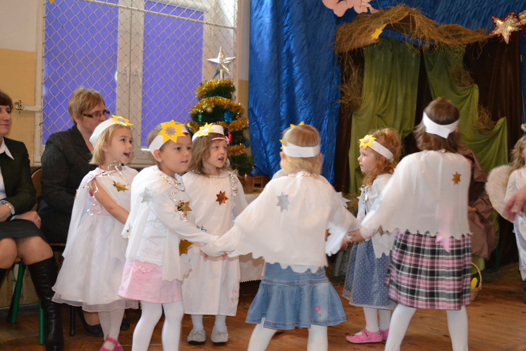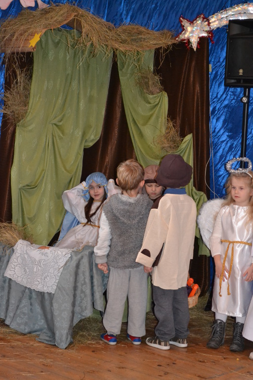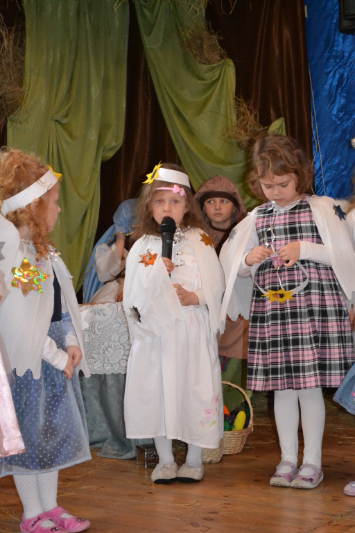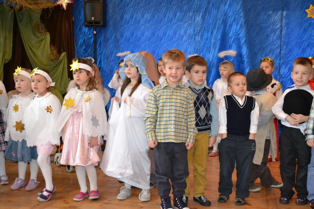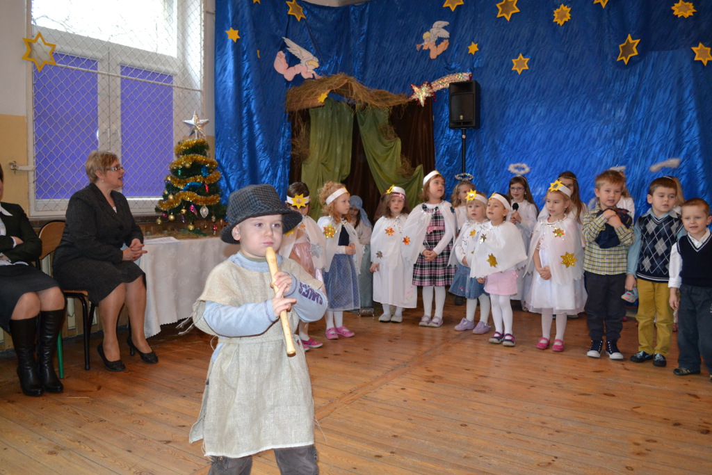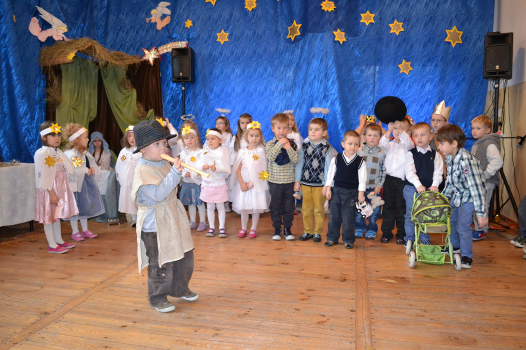 W piątek 20 grudnia o godz.12.00 w naszym przedszkolu odbyły się Jasełka przygotowane przez przedszkolaków i dzieci z "zerówki". Mali aktorzy, we wspaniałych strojach prezentowali się doskonale. Dzieci z dużym przejęciem i poświęceniem wiernie odtwarzały swoje role. Jasełkowa szopka miała tradycyjną obsadę. Była: Maryja, św. Józef, malutkie dzieciątko Jezus, aniołowie, trzej królowie i pastuszkowie. Szopka prezentowała się zdumiewająco, a występy przedszkolaków wywołały wzruszenie na twarzach rodziców.