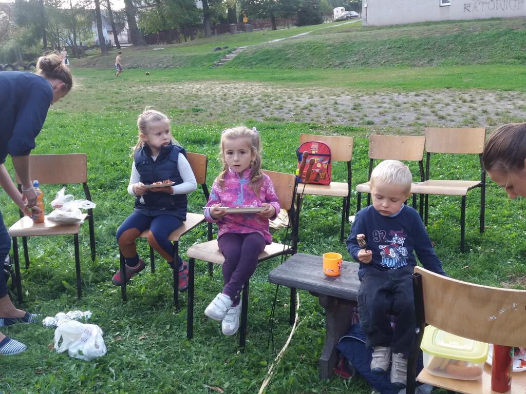 Jak na piknik przystało nikogo nie ominął poczęstunek. Można było zjeść pieczone w ognisku ziemniaki oraz inne smakołyki przygotowane przez rodziców.