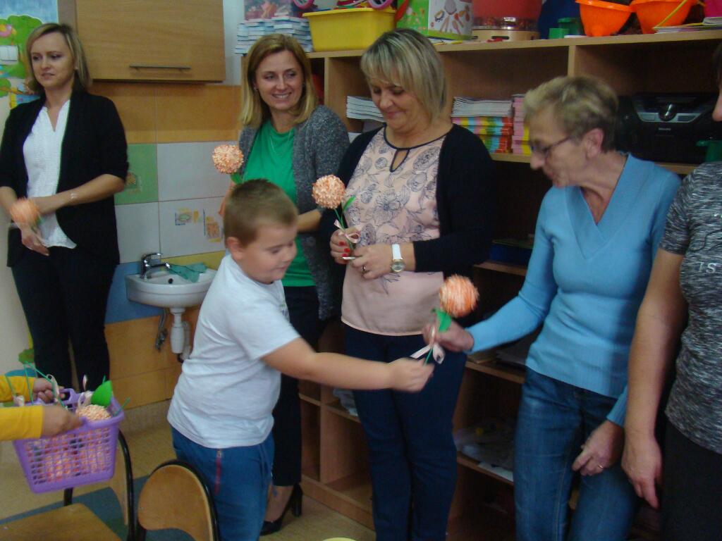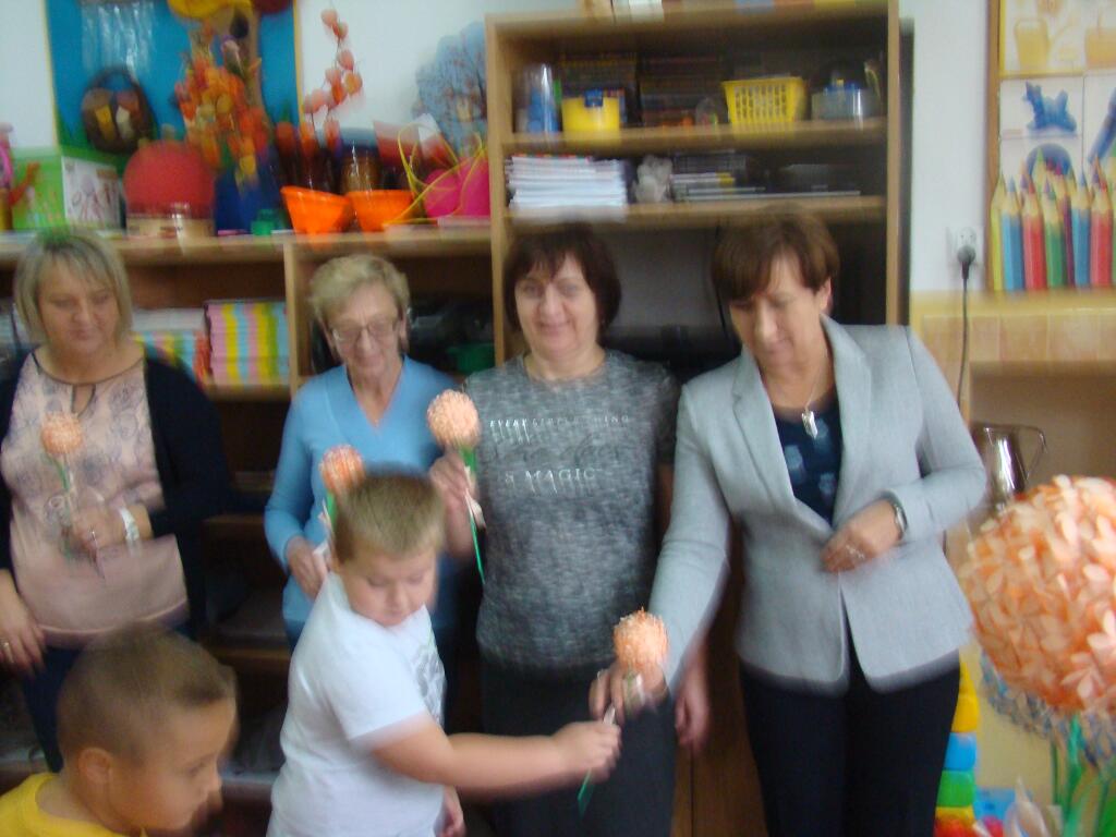 14 październik w przedszkolu to nie tylko Dzień Nauczyciela, ale to święto wszystkich tych, którzy oddają całe swoje serce, aby dzieciom w przedszkolu było naprawdę dobrze i bezpiecznie. W tym roku oglądaliśmy występ, który przygotowały 5-6 - latki. Dzieci zaprezentowały swoje umiejętności śpiewając i recytując wiersze. Były piękne życzenia oraz własnoręcznie wykonane przez straszaków kwiaty. Za część artystyczną przedszkolaki zostały nagrodzone gromkimi brawami.