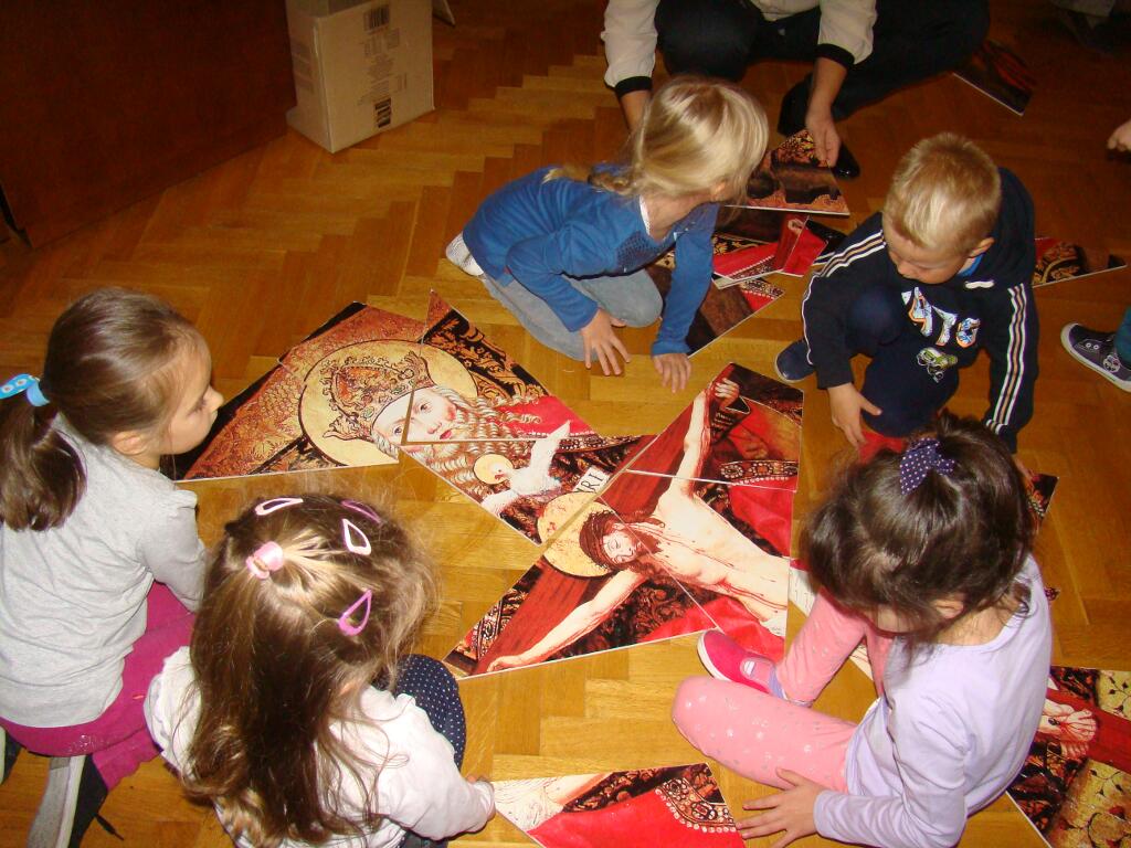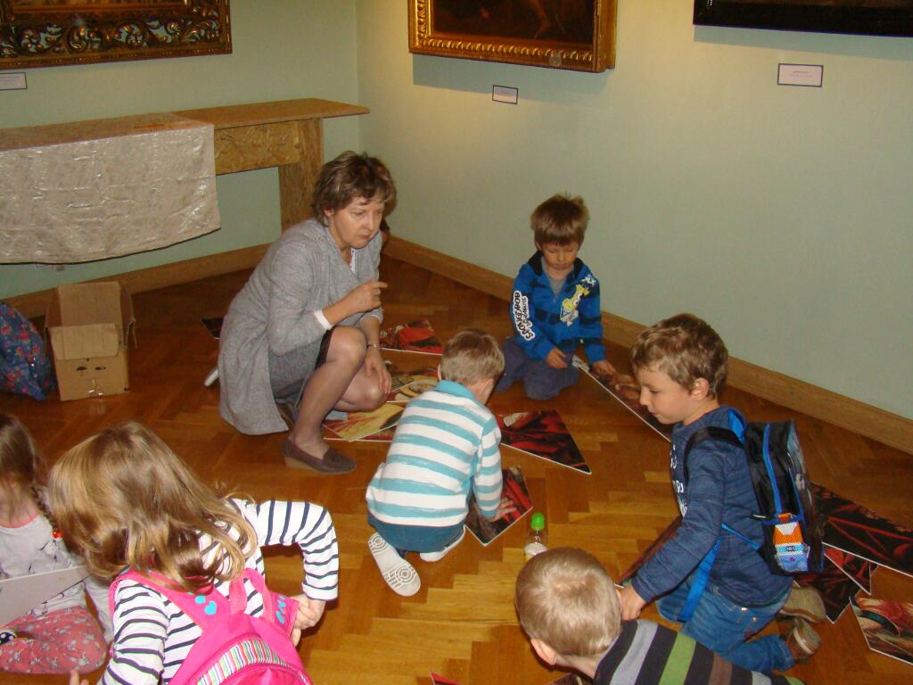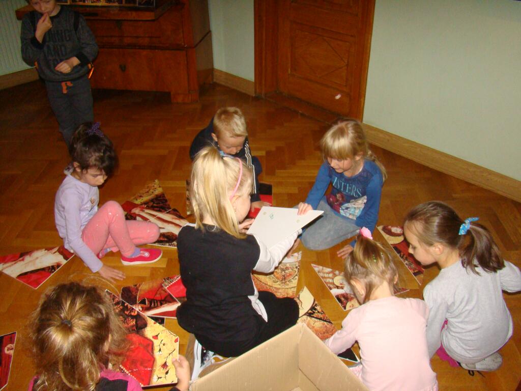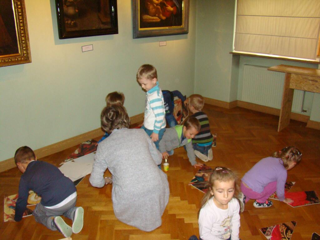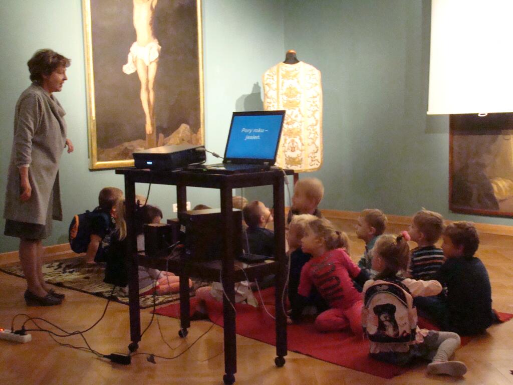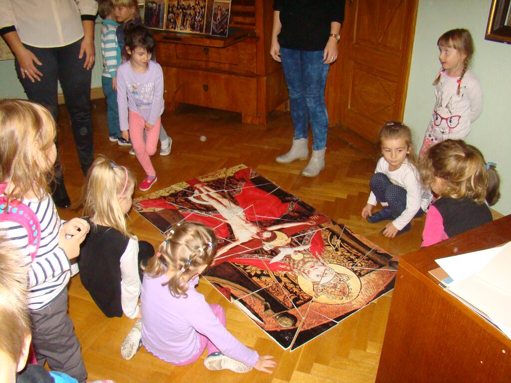 Dzieci obejrzały również prezentacje multimedialną pt. „Pory roku. Jesień” oraz ułożyły puzzle przedstawiające dwa eksponaty muzealne.