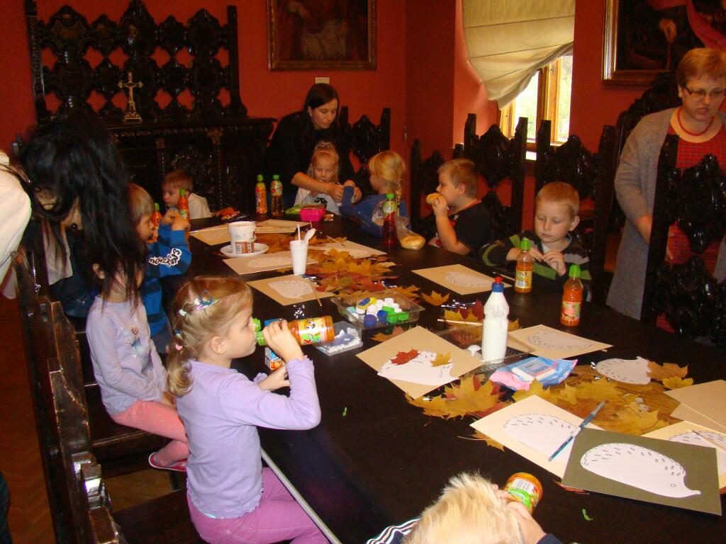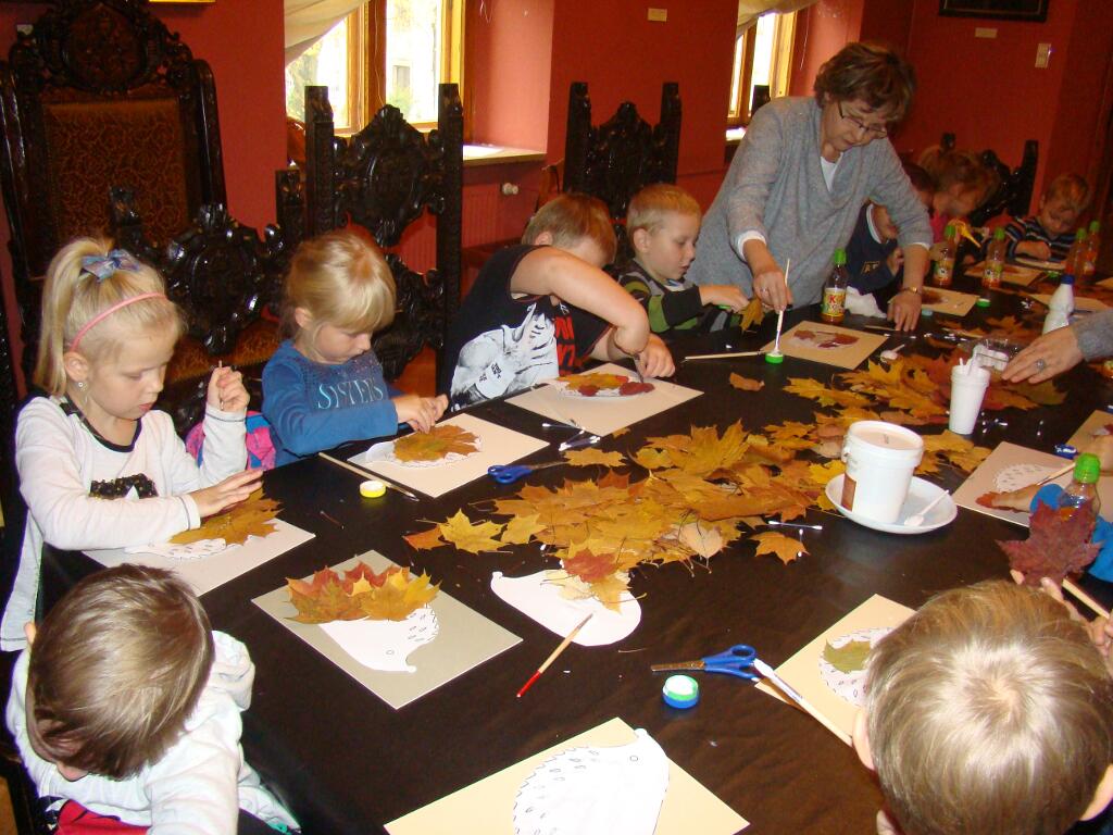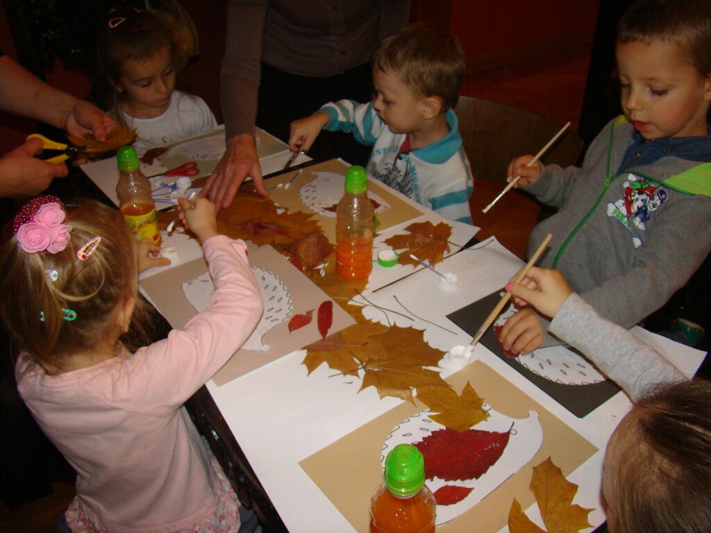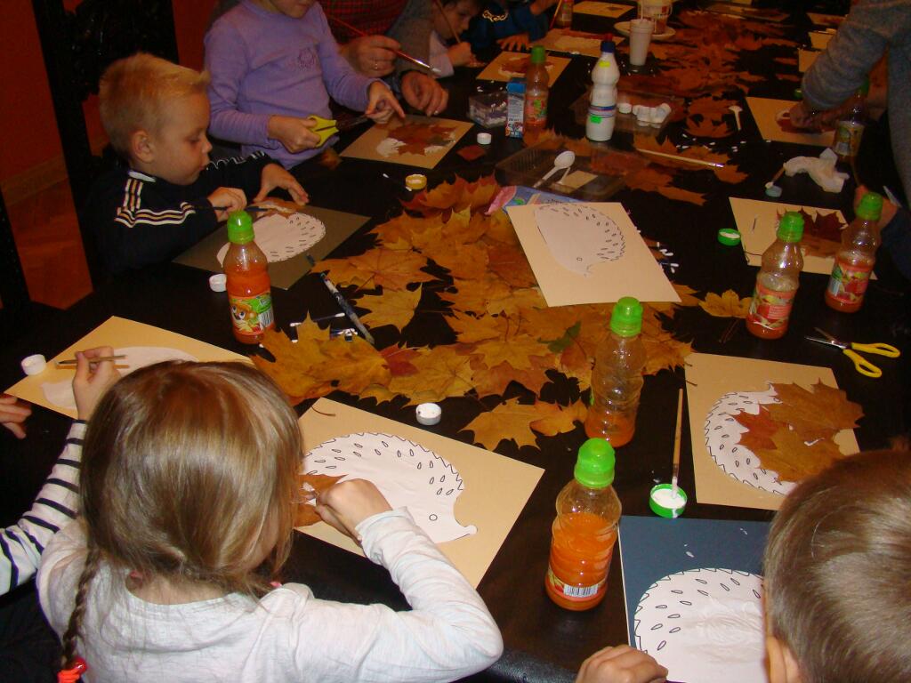 Na koniec mogły samodzielne wykonać jesiennego jeżyka z liści.