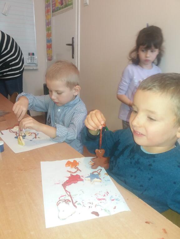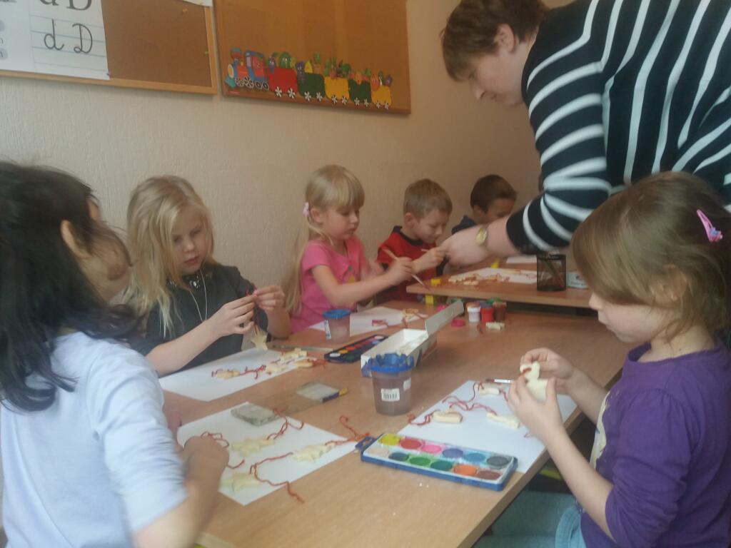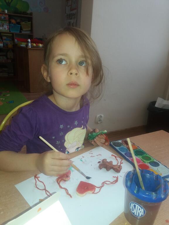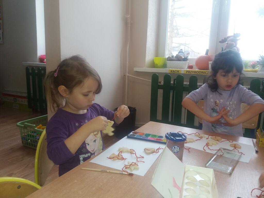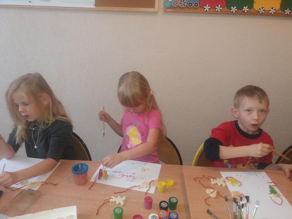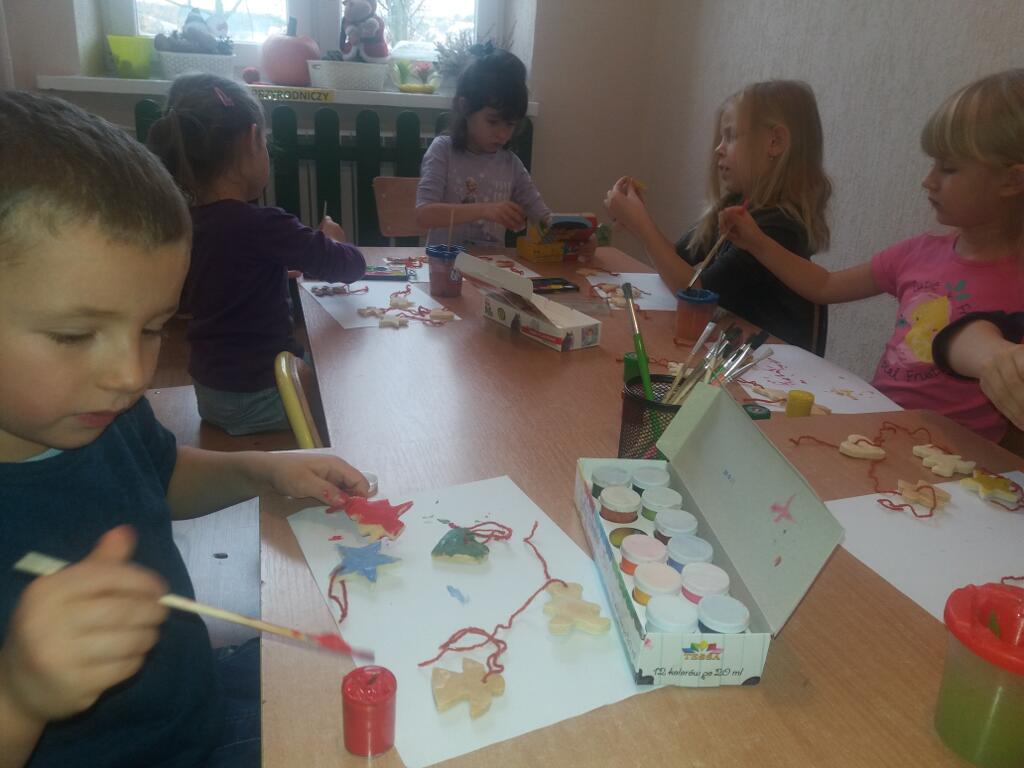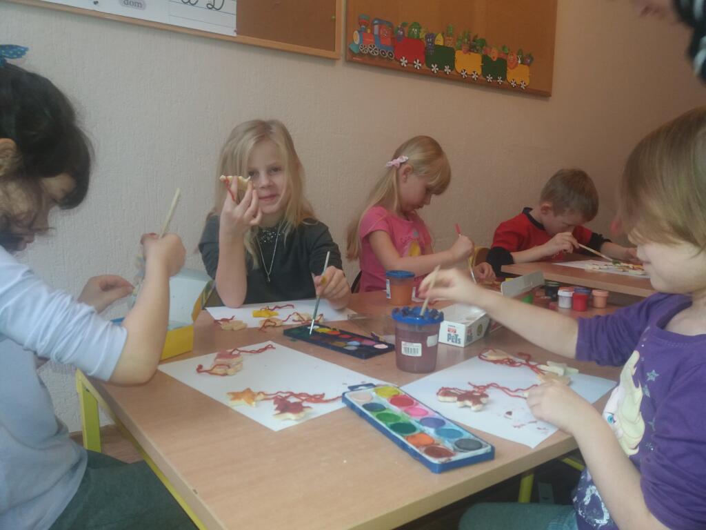 Wielkimi krokami zbliża się dzień, w którym nasze przedszkole odwiedzi Święty Mikołaj. Dzieci z niecierpliwością wyczekują tego momentu, ale też same bardzo lubią obdarowywać innych. Starszaki postanowiły zamienić się w Świętego Mikołaja i przygotować prezent dla rodziców w postaci własnoręcznie wykonanych ozdób choinkowych z masy solnej. Zajęcia te przyniosły dzieciom wiele radości i oprócz masy solnej i kolorowych farb włożyły w nie ogrom serca, czego efektem były wspaniale przygotowane upominki.