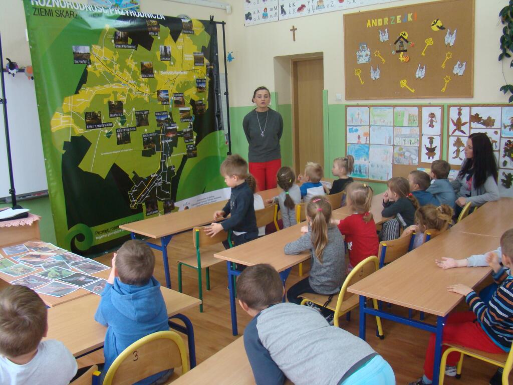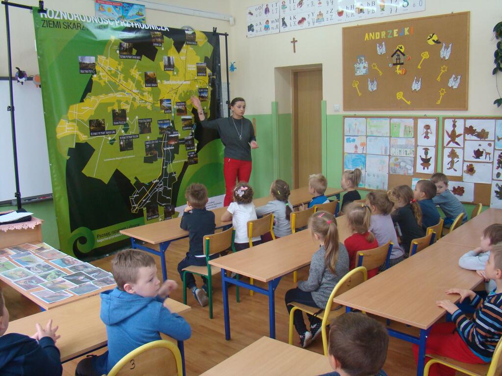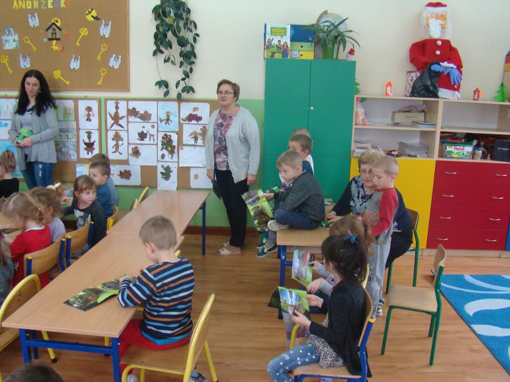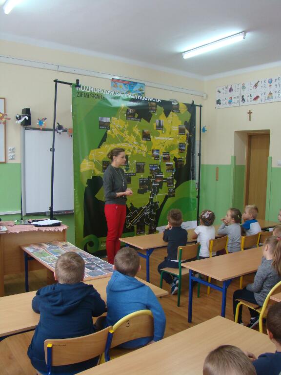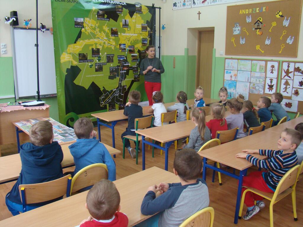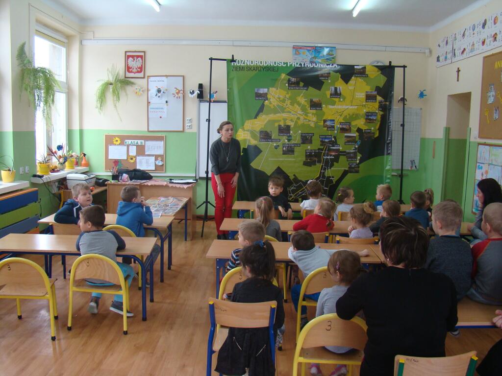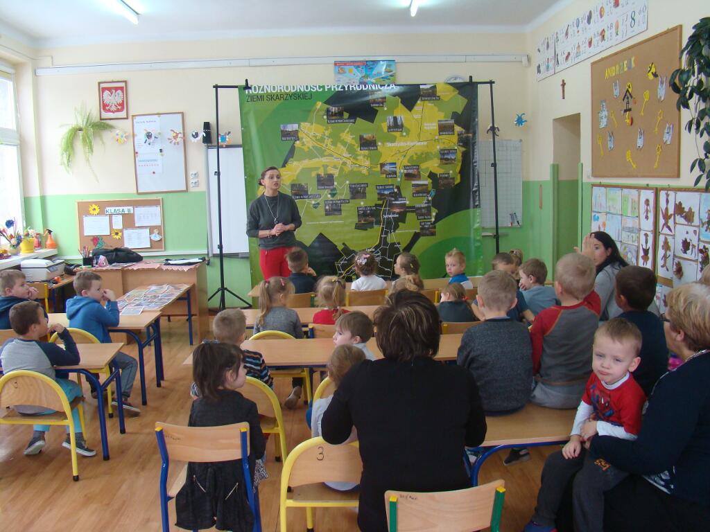 29 listopada przedszkolaki spotkały się z przedstawicielami Skarżyskiego Stowarzyszenia Inicjatyw Obywatelskich. Przybyli goście przedstawili dzieciom prezentację pt. „Poznaję, rozumiem i chronię bogactwo przyrodnicze ziemi skarżyskiej”. Dzieci dowiedziały się jak wiele ciekawych i pięknych miejsc znajduje się w niedalekiej okolicy ich domów, jak wiele gatunków roślin i zwierząt można zaobserwować w przemierzając ziemię skarżyską.