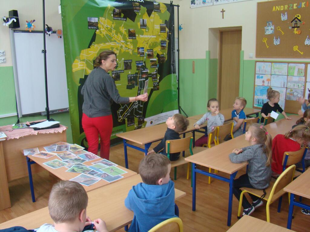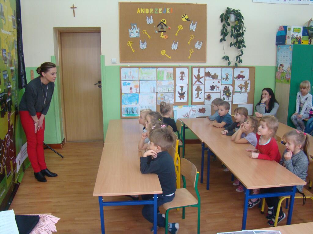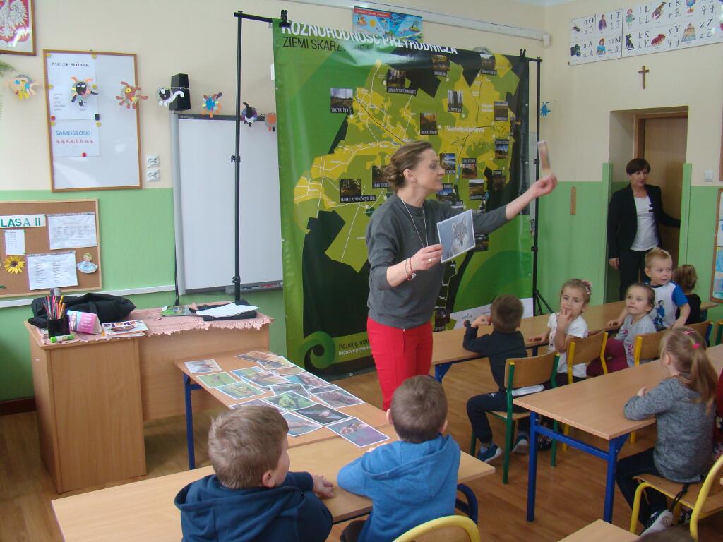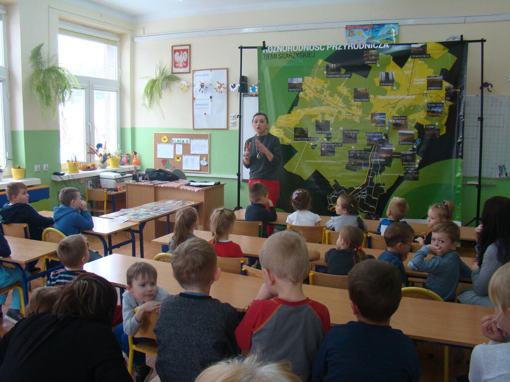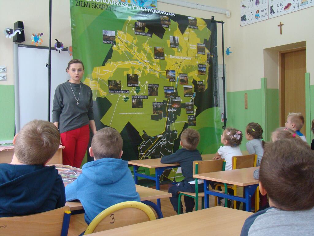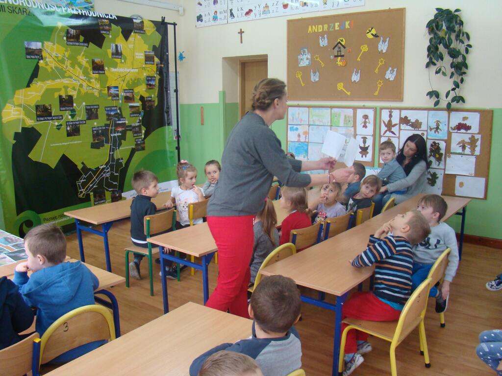 29 listopada przedszkolaki spotkały się z przedstawicielami Skarżyskiego Stowarzyszenia Inicjatyw Obywatelskich. Przybyli goście przedstawili dzieciom prezentację pt. „Poznaję, rozumiem i chronię bogactwo przyrodnicze ziemi skarżyskiej”. Dzieci dowiedziały się jak wiele ciekawych i pięknych miejsc znajduje się w niedalekiej okolicy ich domów, jak wiele gatunków roślin i zwierząt można zaobserwować w przemierzając ziemię skarżyską.