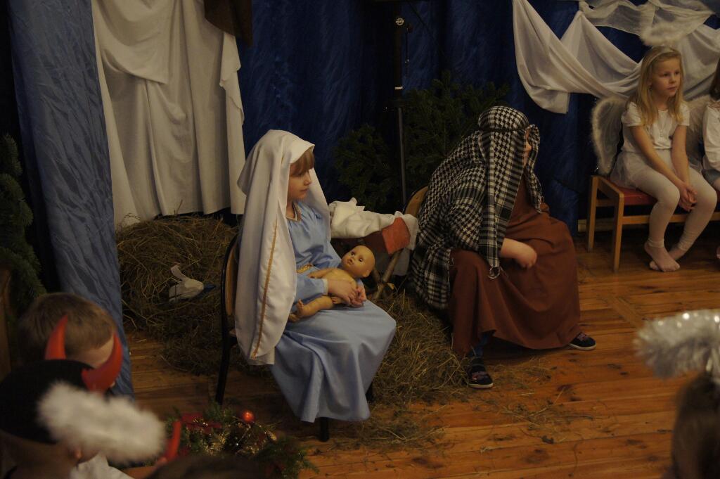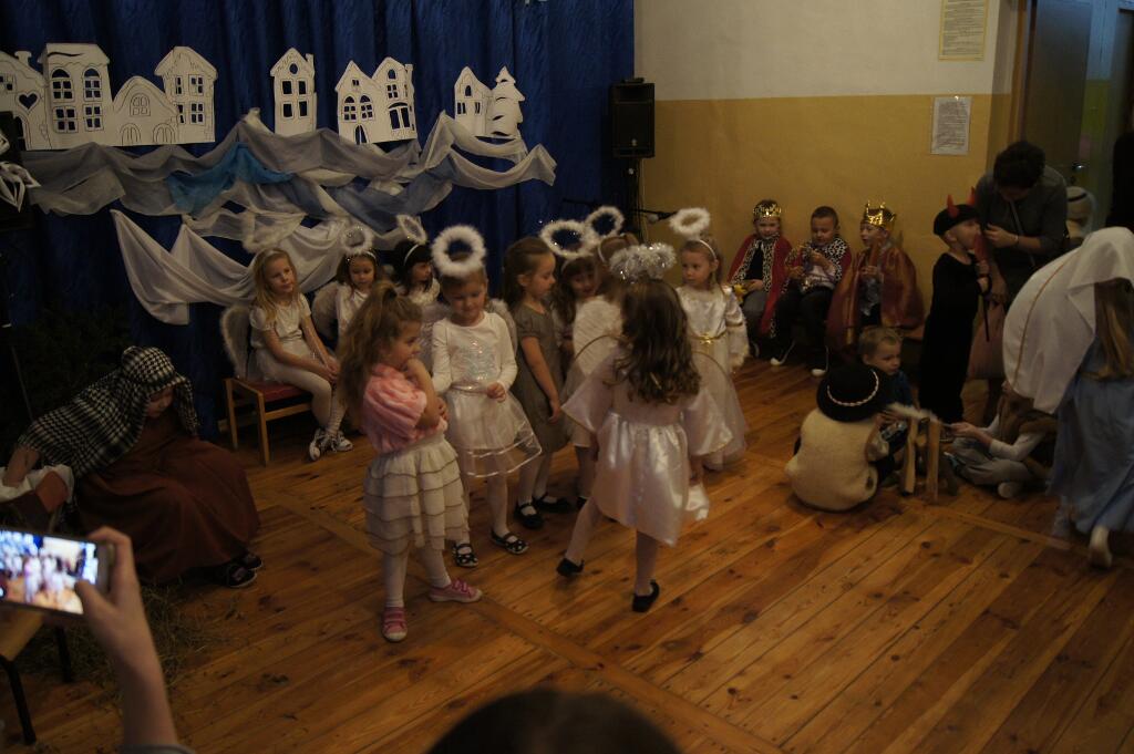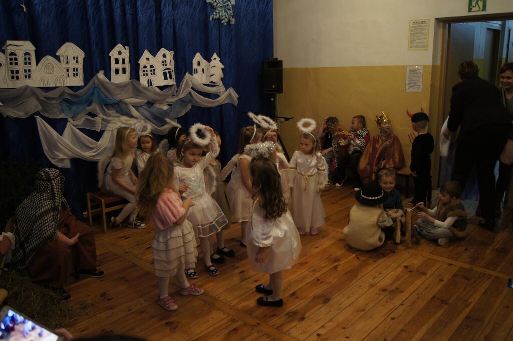 W tym roku dzieci przygotowały pod okiem swoich pań Jasełka. Świąteczny nastrój podkreślały niecodzienne stroje dzieci, bożonarodzeniowa dekoracja sali - stajenka z Józefem, Maryją i Dzieciątkiem.