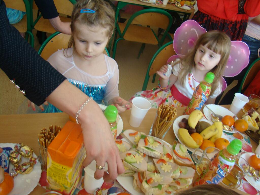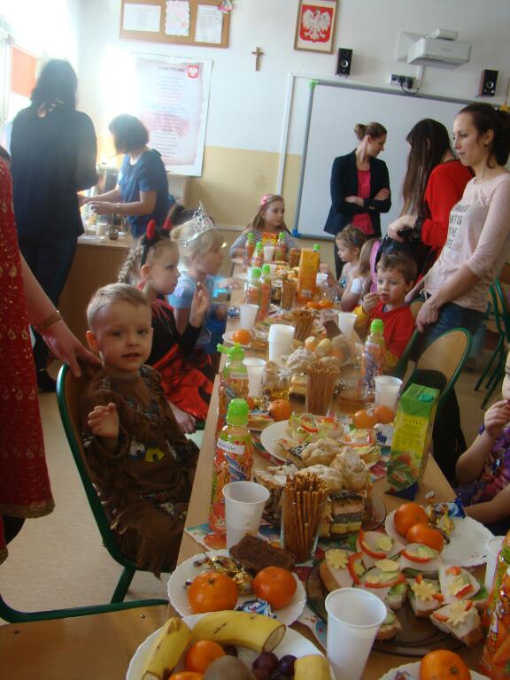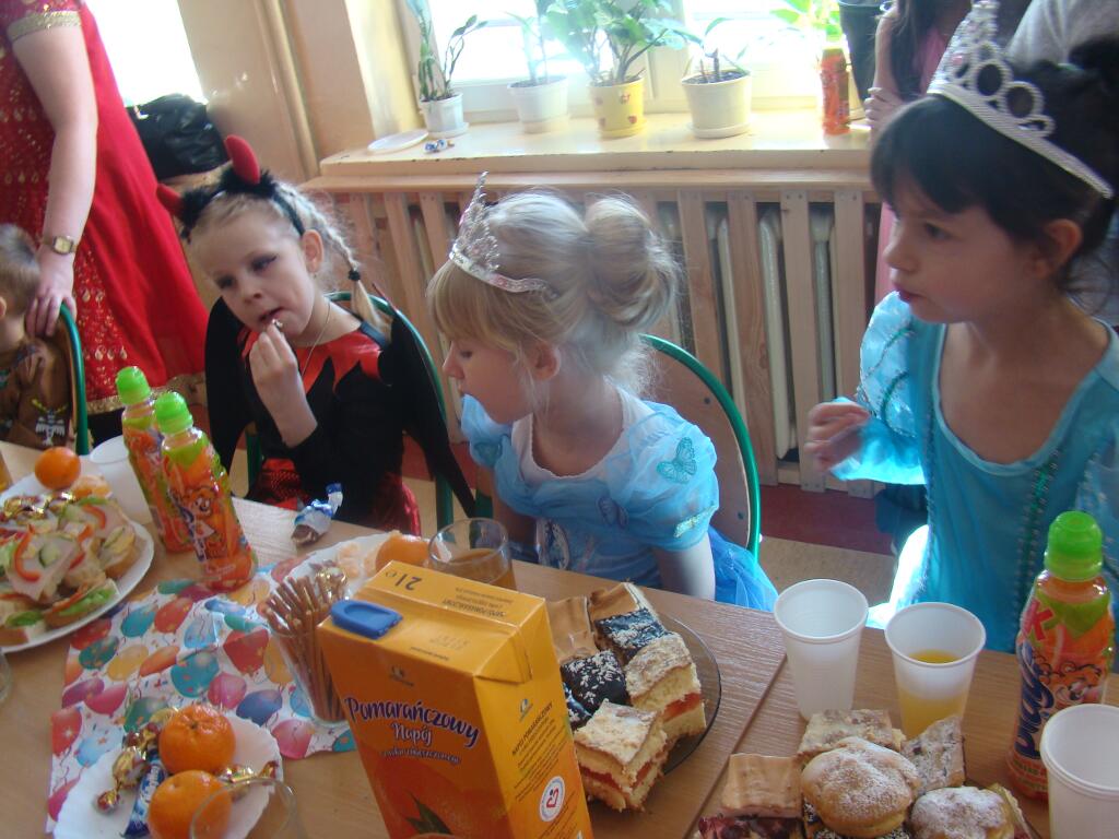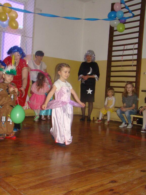 Po kilku chwilach wypoczynku i poczęstunku muzyka znowu porwała wszystkich do tańca w rytm samby, walczyka, Kaczuch. Kiedy czas zabawy dobiegł końca dzieci z żalem opuszczały salę balową. Dziękujemy dzieciom i rodzicom za zaangażowanie w przygotowanie pięknych balowych strojów. Kolejny bal karnawałowy już za rok.
