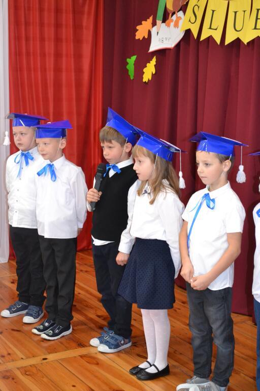 Uroczystą i bardzo oczekiwaną chwilą było ślubowanie na sztandar szkoły. Pierwszaki ślubowały uroczyście, że będą: pilnymi i obowiązkowymi uczniami, miłymi i dobrymi kolegami, zachowywać się w szkole i poza nią nienagannie oraz uczyć się tak aby w przyszłości wyrosnąć na mądrego i uczciwego człowieka. Towarzyszyła temu podniosła atmosfera, a na buziach dzieci rysowały się wielkie emocje. Bohaterowie tego wydarzenia dowiedli swoją postawą, iż doskonale rozumieją słowa: „Ślubuję być dobrym Polakiem, dbać o dobre imię klasy i szkoły”