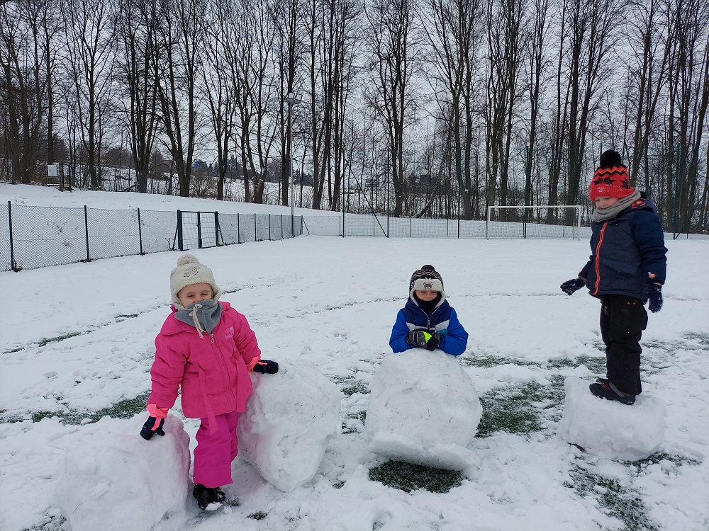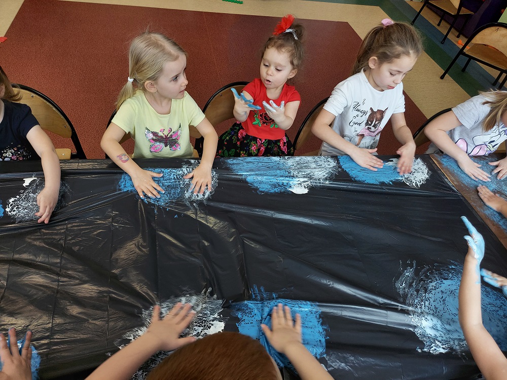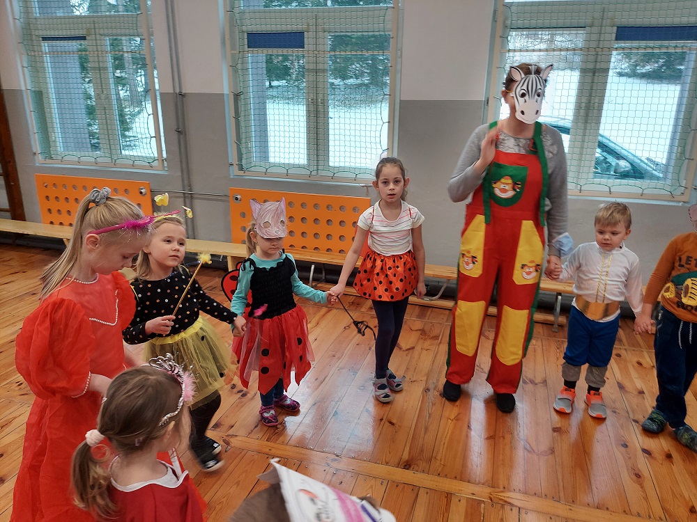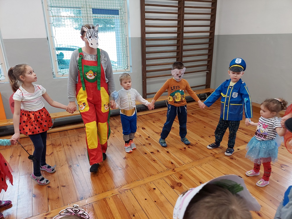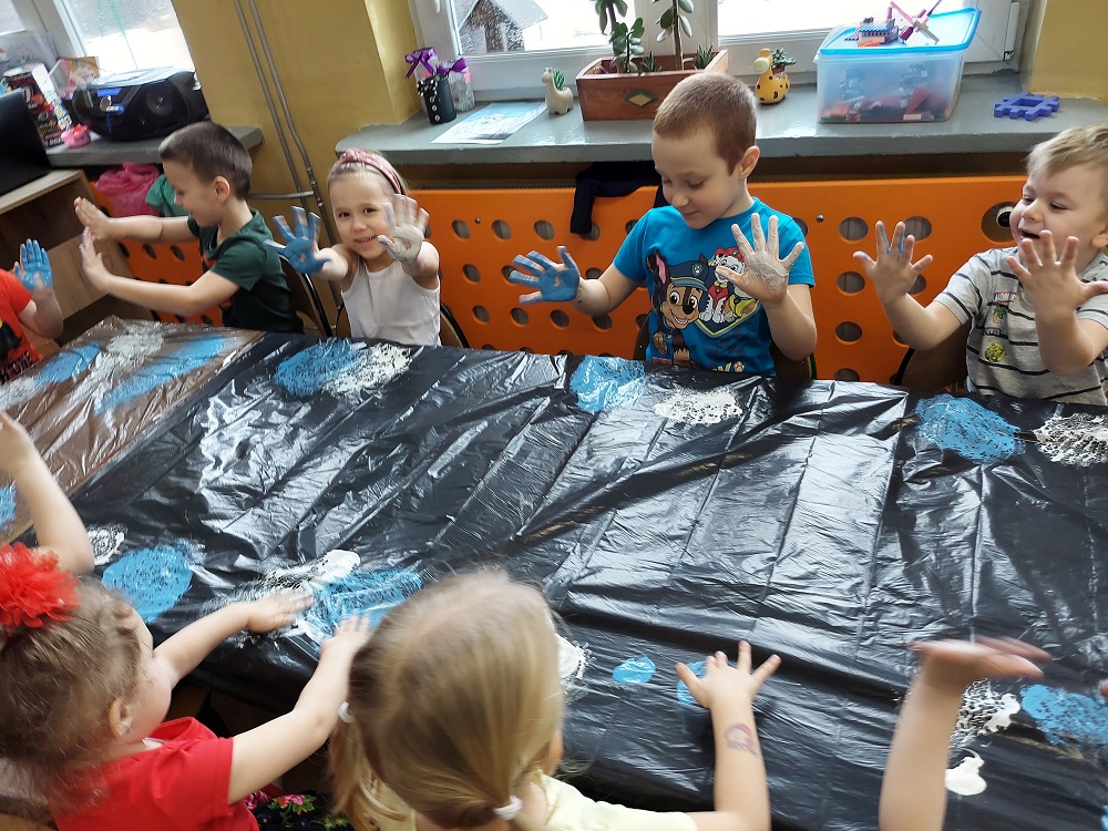 Celem tegorocznych ferii była przede wszystkim dobra zabawa. Na ten czas zaplanowano wiele ciekawych aktywności dla przedszkolaków. W ruch poszły między innymi farby, którymi „Klepaliśmy do rytmu rękami” przy piosence z naszego ulubionego Edumuz, czytaliśmy książeczki wybrane przez dzieci i kolorowaliśmy postacie z bajek. Bawiliśmy się także na śniegu tocząc ogromne kule i łapiąc zimowe promienie słonka. Nie zabrakło też tańców-przebierańców. To był wspaniały czas!