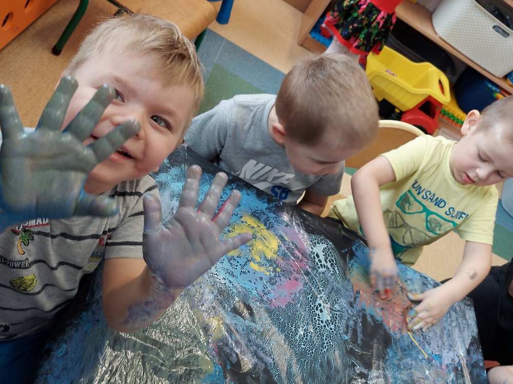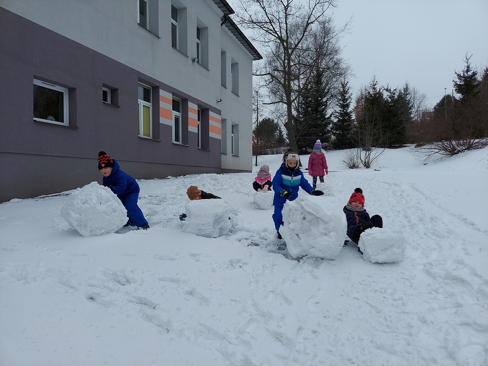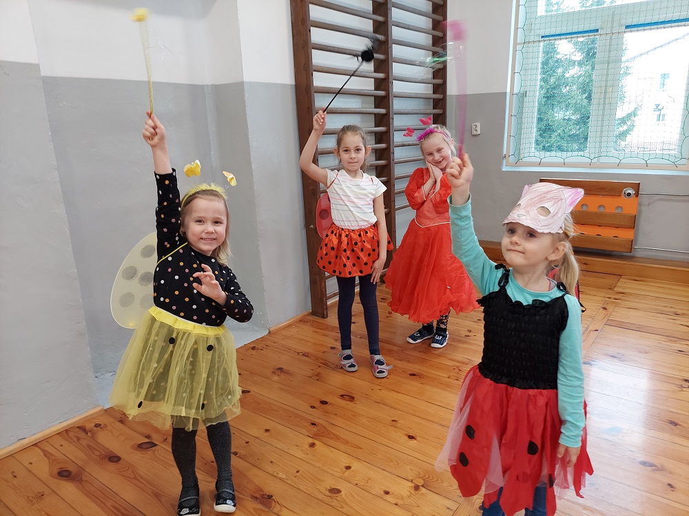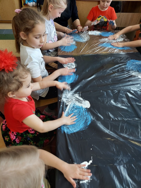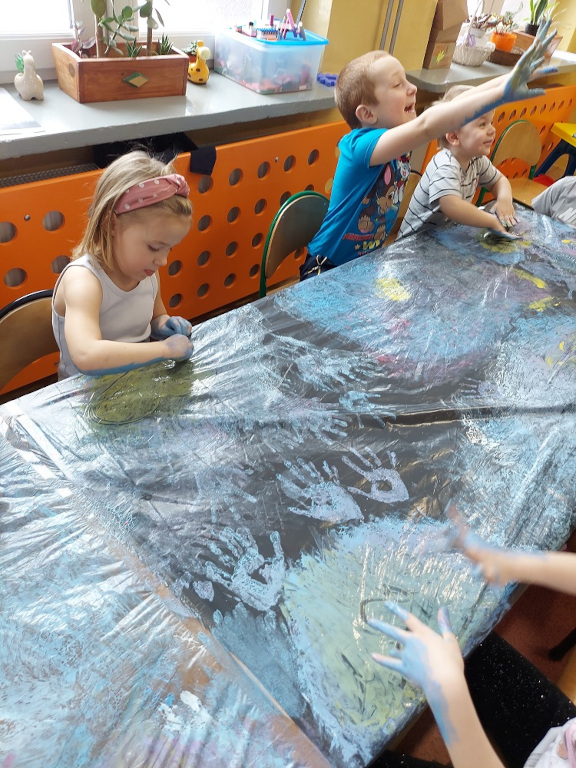 Celem tegorocznych ferii była przede wszystkim dobra zabawa. Na ten czas zaplanowano wiele ciekawych aktywności dla przedszkolaków. W ruch poszły między innymi farby, którymi „Klepaliśmy do rytmu rękami” przy piosence z naszego ulubionego Edumuz, czytaliśmy książeczki wybrane przez dzieci i kolorowaliśmy postacie z bajek. Bawiliśmy się także na śniegu tocząc ogromne kule i łapiąc zimowe promienie słonka. Nie zabrakło też tańców-przebierańców. To był wspaniały czas!
