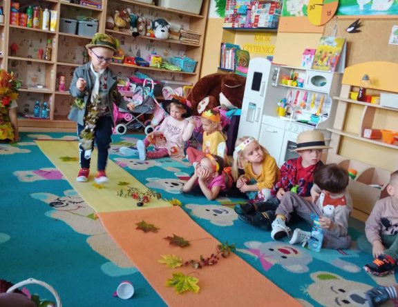 Read MoreNa powitanie jesieni Żyrafki i Zeberki prezentowały się na wybiegu w różnych strojach. Był młody gentleman w stylowych spodniach, w jakże modną kratę i czapkę wyciągniętą z przepastnego kufra .Asystentka Pani Jesieni w kapeluszu otoczonym pnączem winorośli z