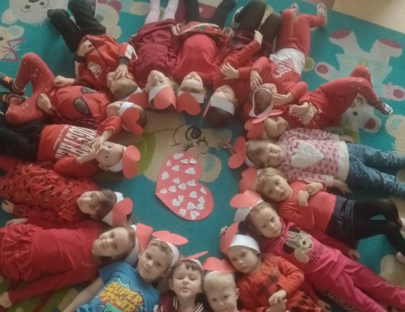 W poniedziałek 14 lutego świętowaliśmy w naszym przedszkolu dzień zakochanych . W tym dniu dzieci ubrały się na czerwono, a dzień przepełniony był atrakcjami oraz pogadankami na temat znaczenia miłości i przyjaźni w naszym życiu.