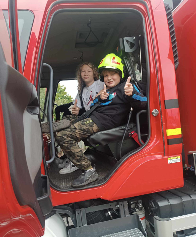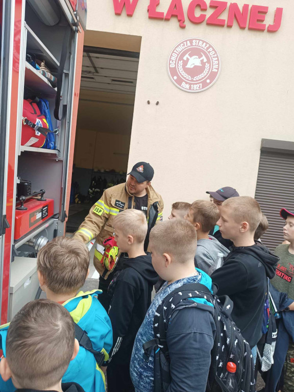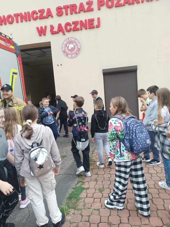 W piękne wtorkowe przedpołudnie uczniowie klas starszych wraz z wychowawcami wyruszyli na rajd po okolicznych drogach. Humory dopisywały i wszyscy chętnie szli obserwując i podziwiając okolicę. Była to świetna okazja dla dzieci oraz ich wychowawców, żeby spędzić czas na łonie przyrody i wspólnie pokonywać kolejne kilometry drogi. Słoneczna pogoda dodawała siły. Podczas spaceru dzieci odwiedziły remizę strażacką. Pan strażak z Ochotniczej Straży Pożarnej w Łącznej pokazał uczniom samochód strażacki i opowiedział o zawodzie strażaka. Dzieciom bardzo spodobało się i zaciekawieniem słuchali o jego pracy. Później mieli okazję wsiąść do wozu strażackiego, a nawet przymierzyć strój strażaka. Po małym posiłku uczniowie zmęczeni, ale też i zadowoleni wrócili do szkoły.